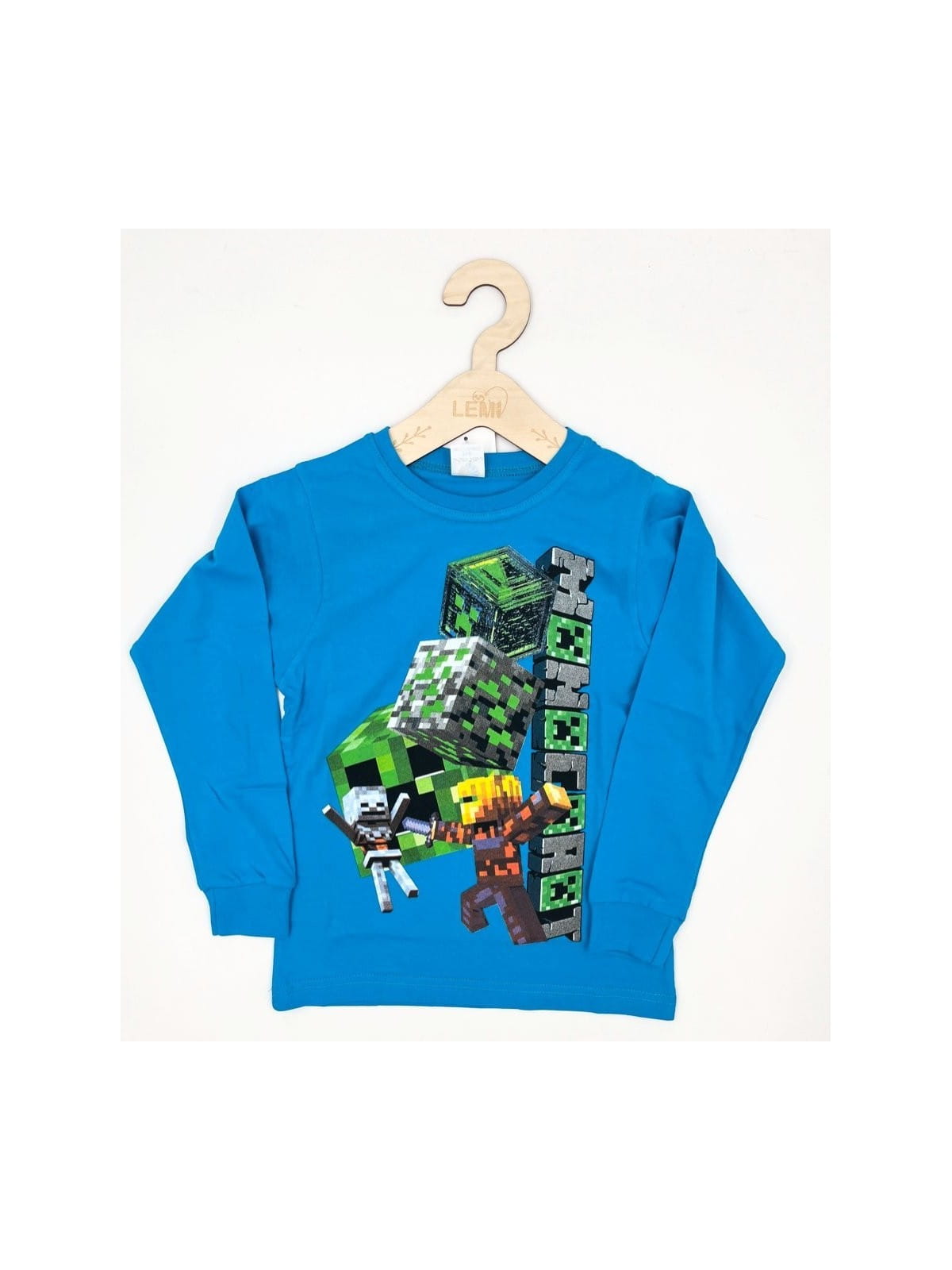 Bluzka chłopięca bawełna długi rękaw Minecraft polska niebieska