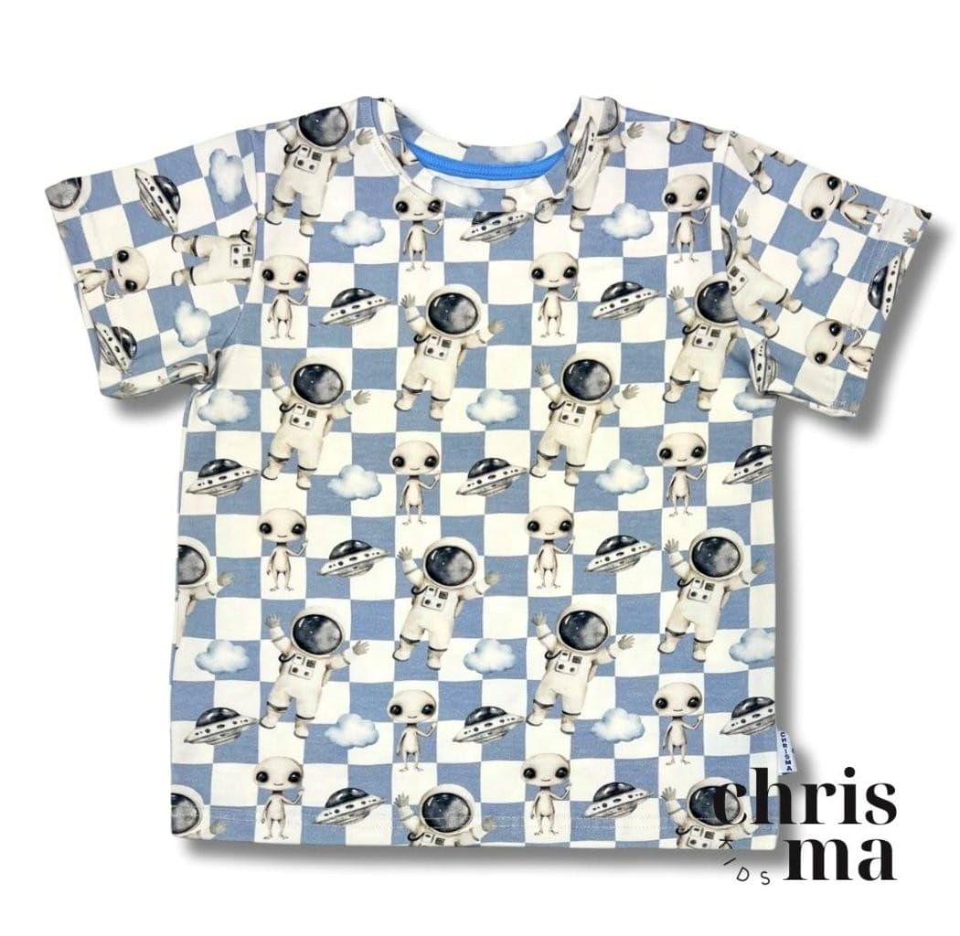Koszulka wyróżnia się dynamicznym, trwałym nadrukiem 3D przedstawiającym statki kosmiczne i kosmitów rozmieszczonych na całej powierzchni bluzki. Dzięki nowoczesnej technologii nadruku wzór jest odporny na pranie i nie traci intensywności kolorów.