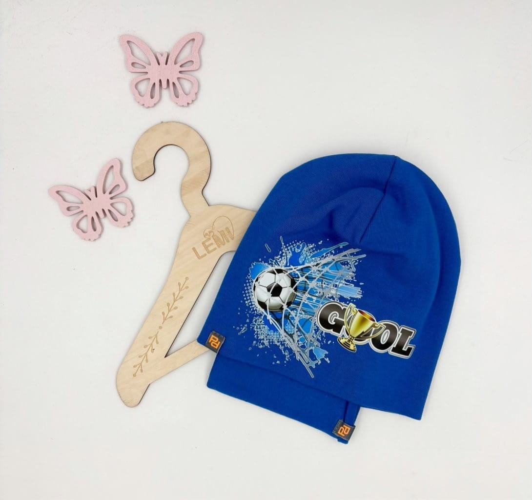 Czapka z podwójnego materiału posiada trwały nadruk z motywem piłki nożnej na przodzie, który zachowuje intensywność kolorów nawet po wielu praniach. Dzięki możliwości prania w pralce na lewej stronie komplet jest praktyczny i łatwy w utrzymaniu czystości.