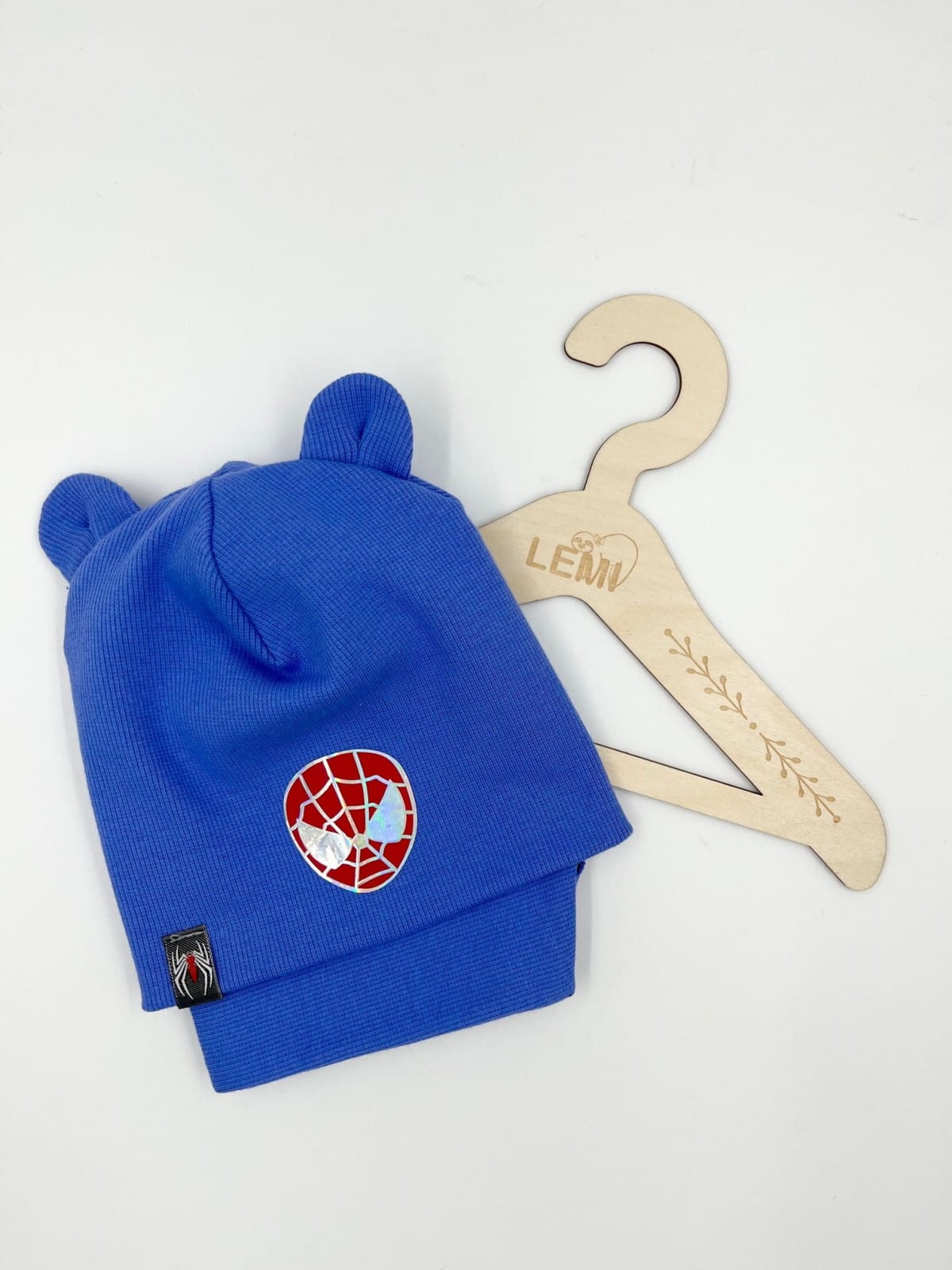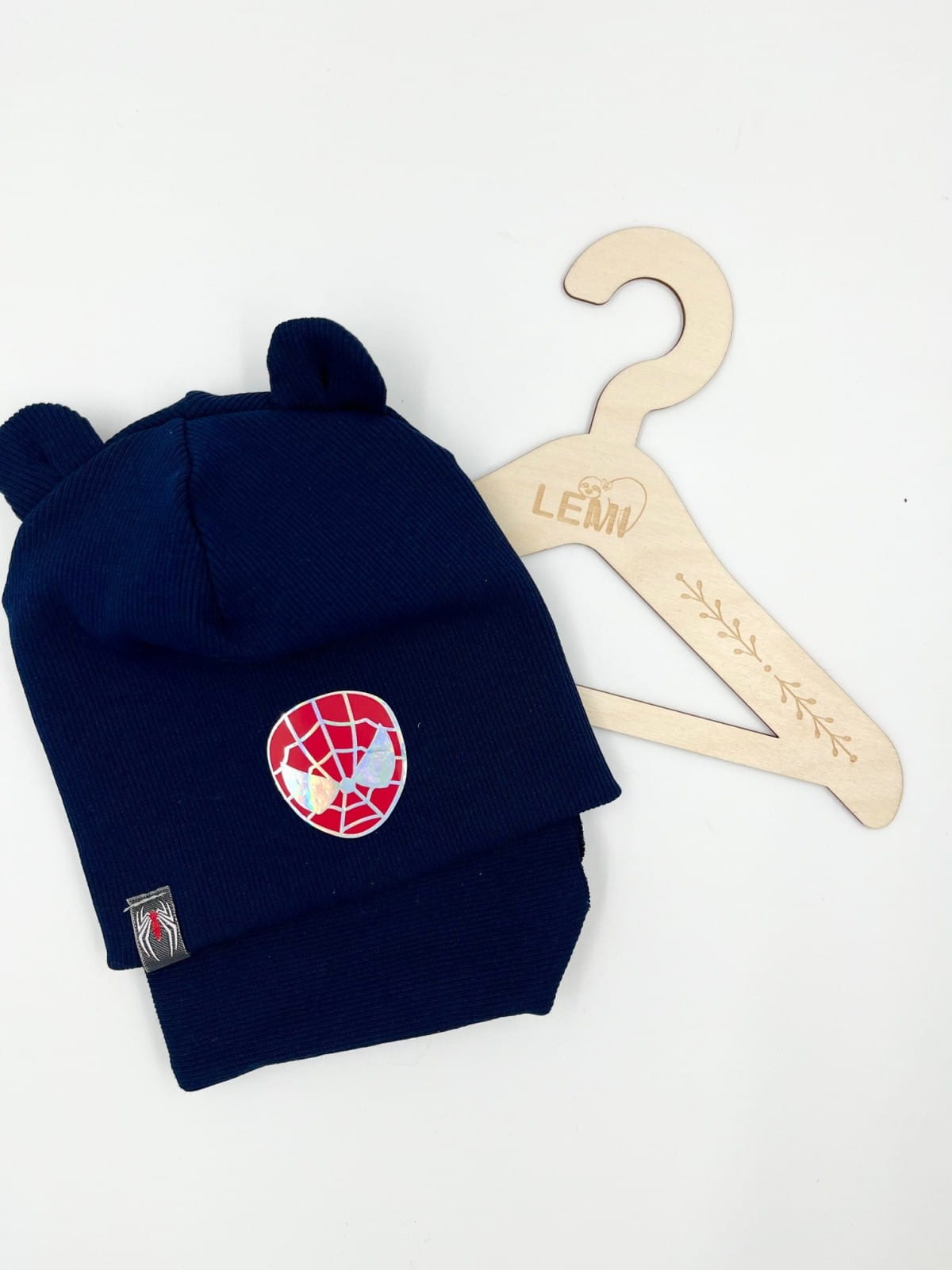 Komplet prążek czapka plus komin, podwójny materiał czapka. Czapka mierzona na płasko to ok 20 cm szeroka, wysoka ok 20 cm. Idealna na sezon wiosenno-jesienny jak i na ciepłą zimę. Wiek ok 2-5 lat. Na czapce holograficzna głowa Spidermana.