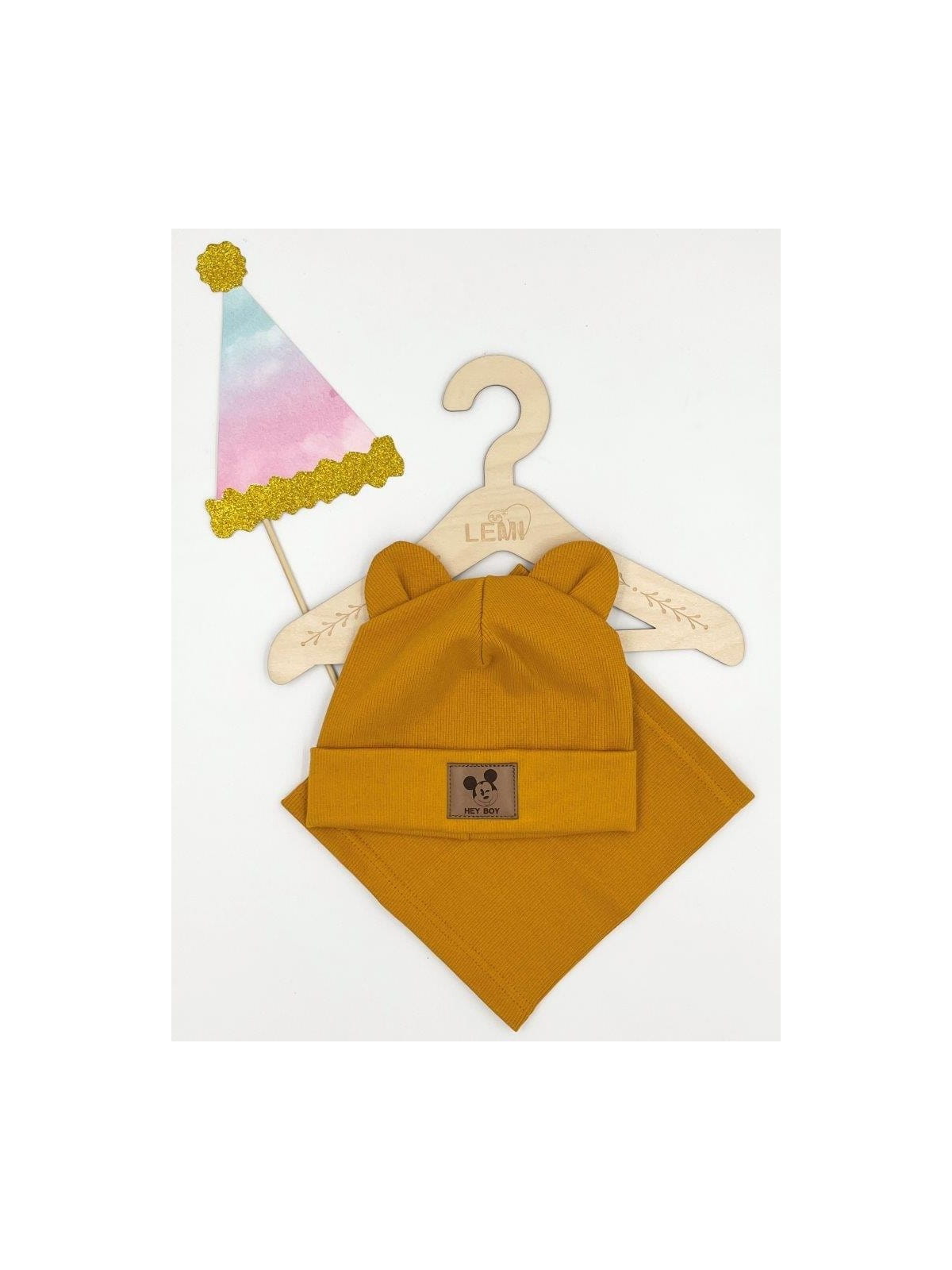 Komplet chłopięcy czapka plus komin prążek USZKI TK polski bawełna wiosna