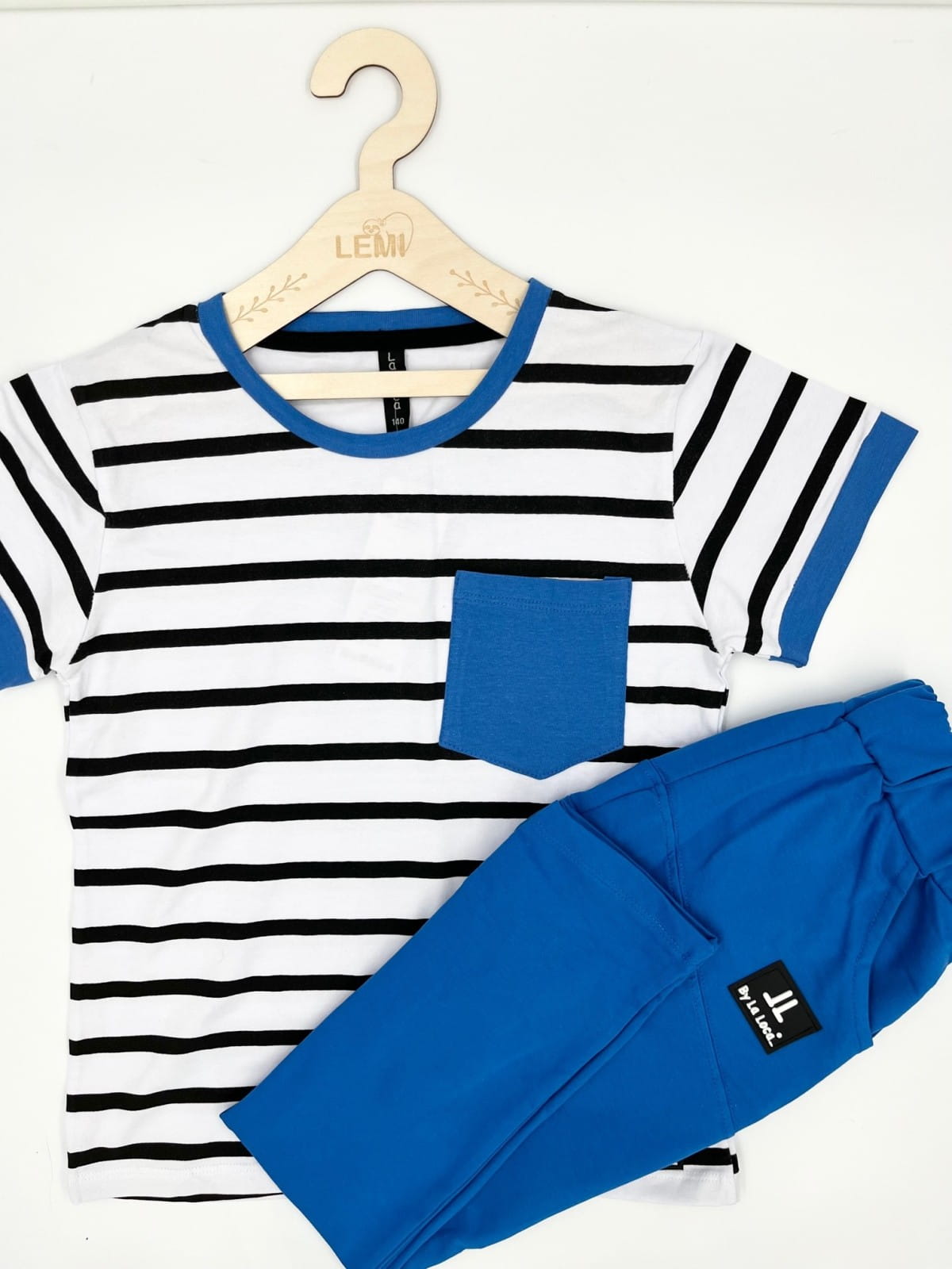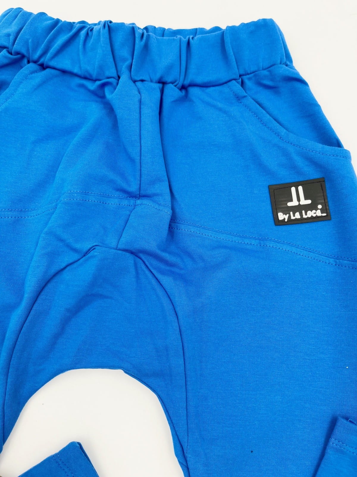 Dresowe spodnie chłopięce polskiej produkcji firmy La Loca. 95% bawełna, 5% elastan, super przyjemny i dobry jakościowo materiał. Spodnie maja boczne kieszenie i jedną tylną. Spodnie typu baggy, z przeszyciami. Do kompletu można dobrać t-shirt w paski dostępny w sklepie.