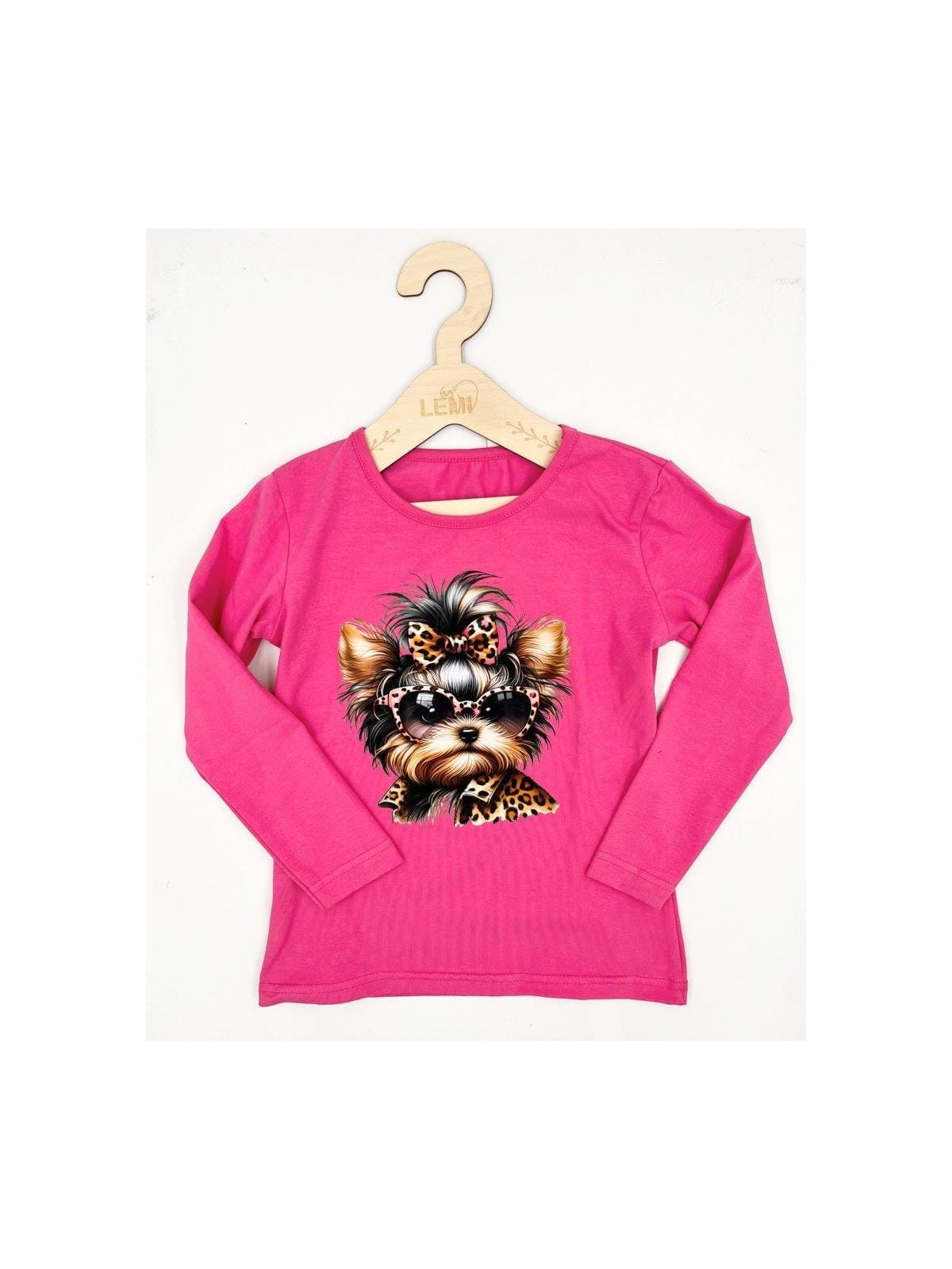 Bluzka z długim rękawem, uszyta z miękkiej, przewiewnej bawełny, która zapewnia komfort noszenia przez cały dzień ( 97% bawełna, 3% elastan). Idealna na każdą porę roku, zarówno do szkoły, jak i na co dzień. Na przodzie bluzki znajduje się uroczy nadruk z wizerunkiem pieska rasy York, który zachwyci każdą małą miłośniczkę zwierząt. Delikatne kolory i staranne wykonanie nadruku dodają bluzce wyjątkowego charakteru. Bluzka jest produkowana w Polsce, co gwarantuje wysoką jakość materiałów oraz dbałość o detale. Doskonała do noszenia samodzielnie lub pod sweterek czy kurtkę. To must-have w garderobie każdej dziewczynki, która kocha pieski!