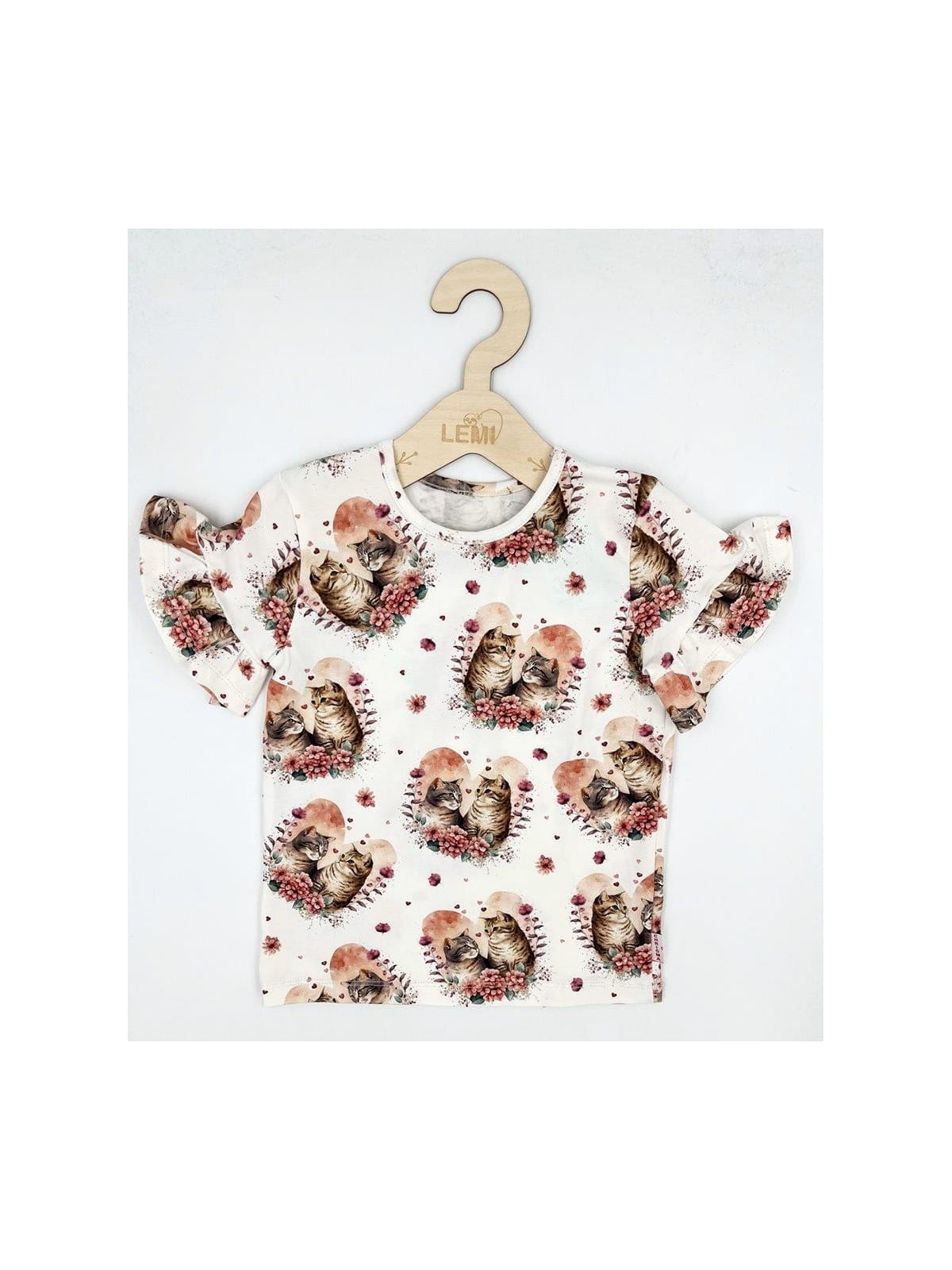Bawełniany t-shirt dla dziewczynki w kotki polskiej produkcji firmy Chrisma to uroczy i wygodny element dziewczęcej garderoby. Wykonany z wysokiej jakości materiału, który jest przyjemny dla skóry dziecka (95% bawełna, 5% elastan). Na całej koszulce znajduje się wzór w postaci małych kociaków, które z pewnością przypadną do gustu malutkim miłośniczkom zwierząt.