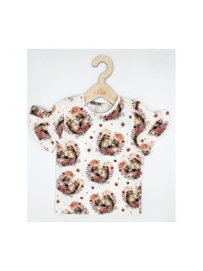 Rękawki tego t-shirtu są ozdobione delikatną falbanką, która nadaje koszulce dziewczęcego i uroczego wyglądu. Ten dodatek sprawia, że t-shirt jest bardziej dopasowany do stylu małych dziewczynek, które lubią bawić się modą i eksperymentować z różnymi ubraniami.