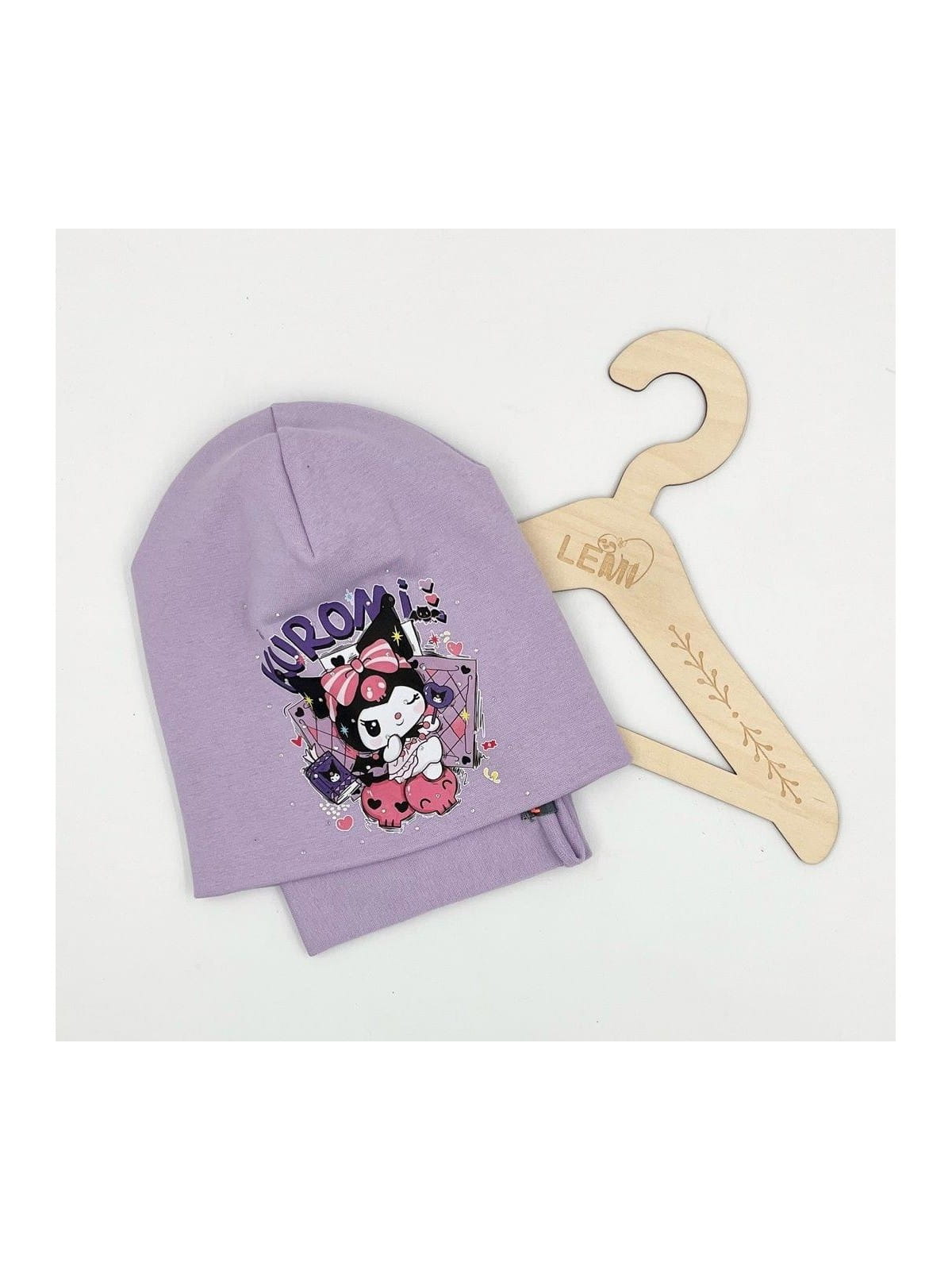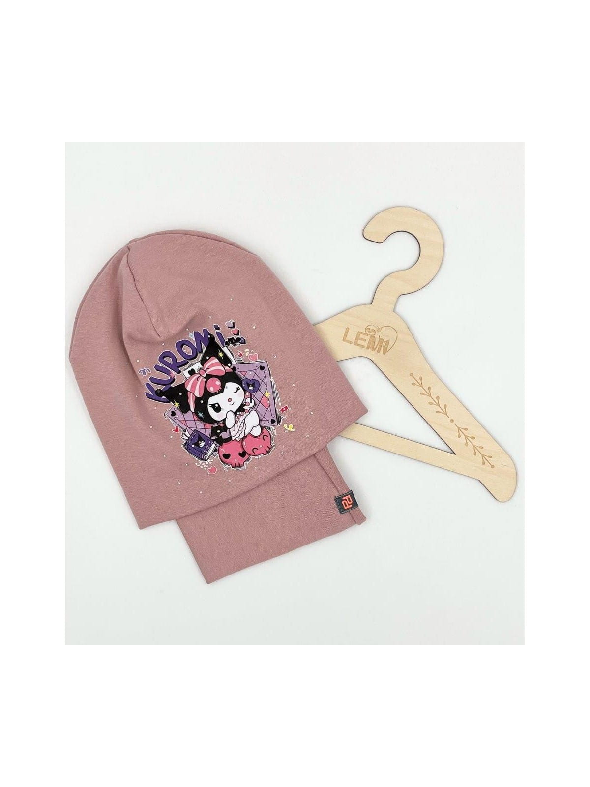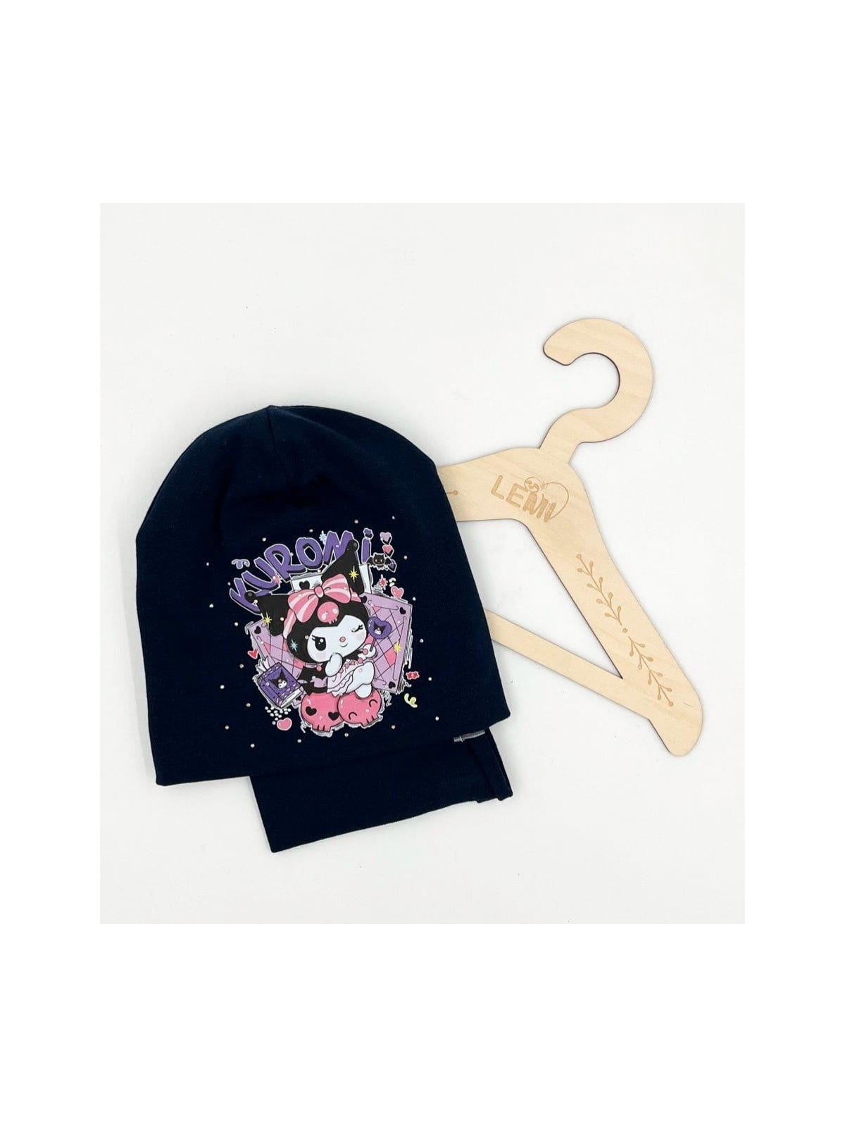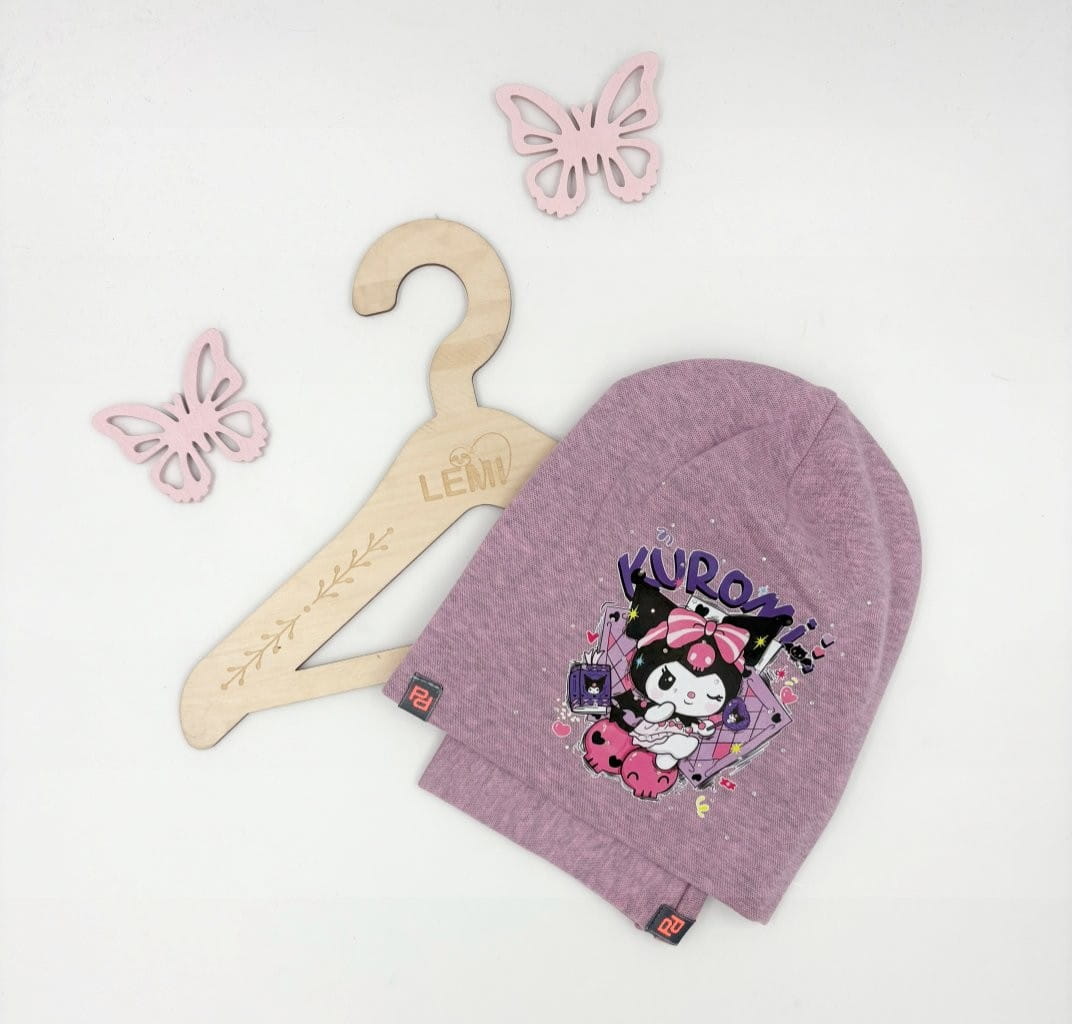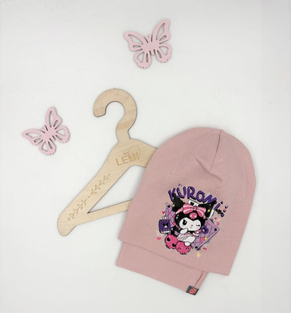 Bawełniany komplet dla dziewczynki – czapka + komin z motywem Kuromi, polska produkcja