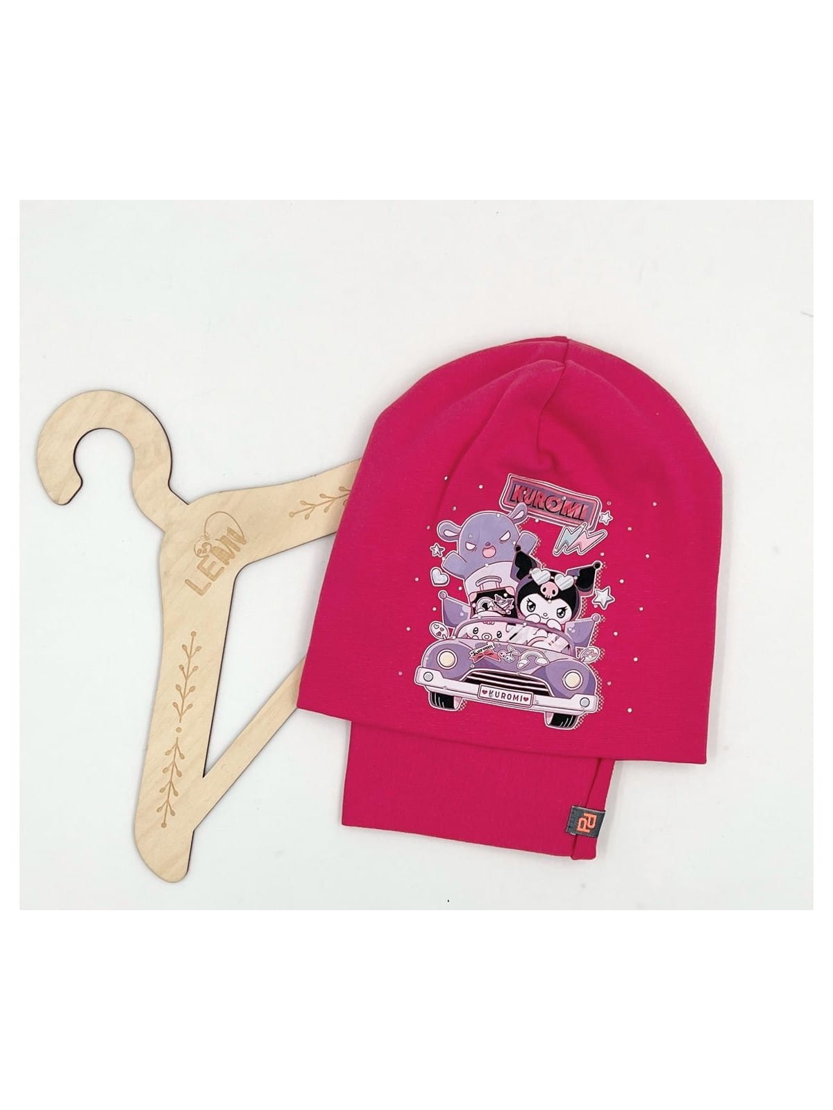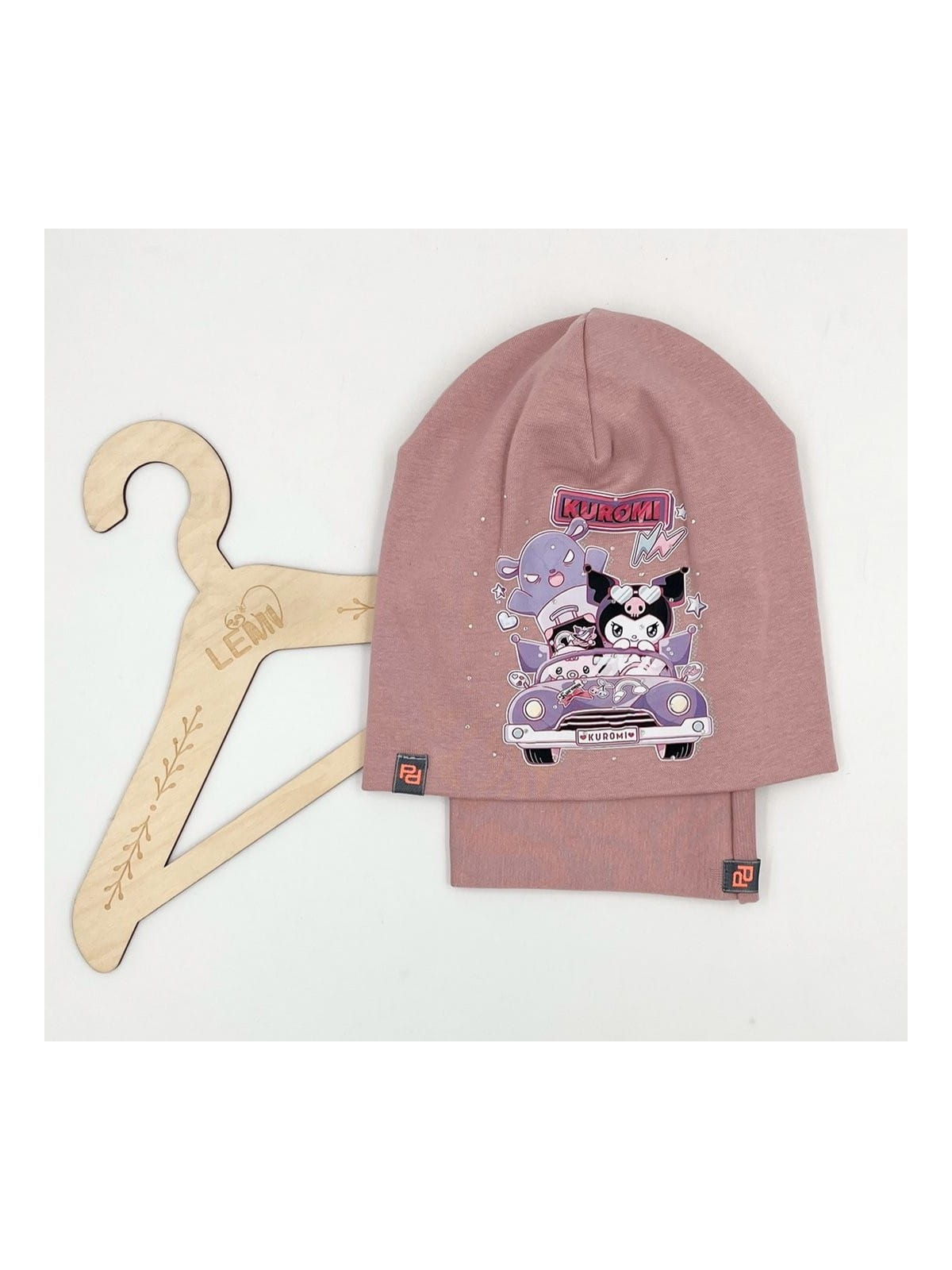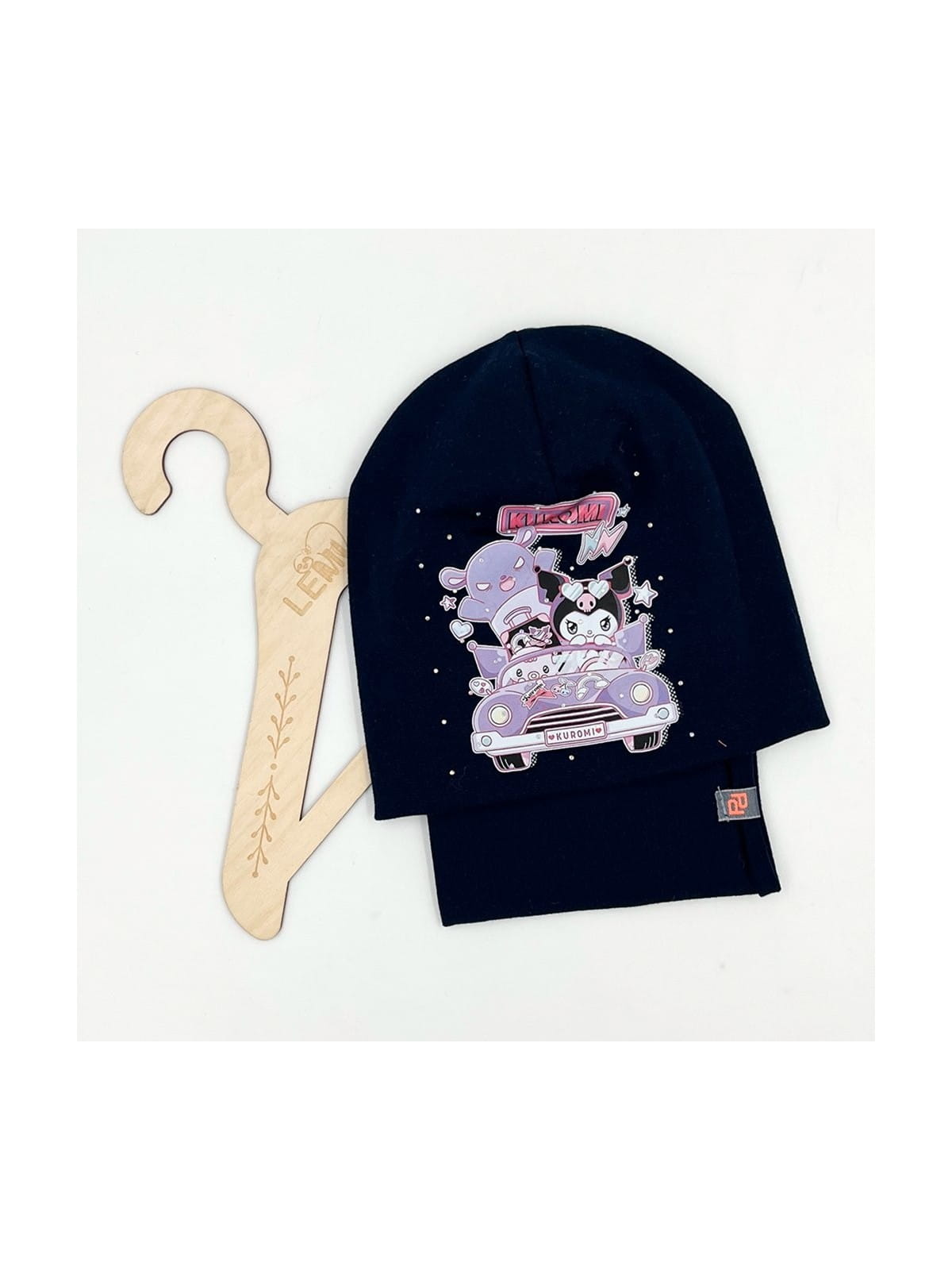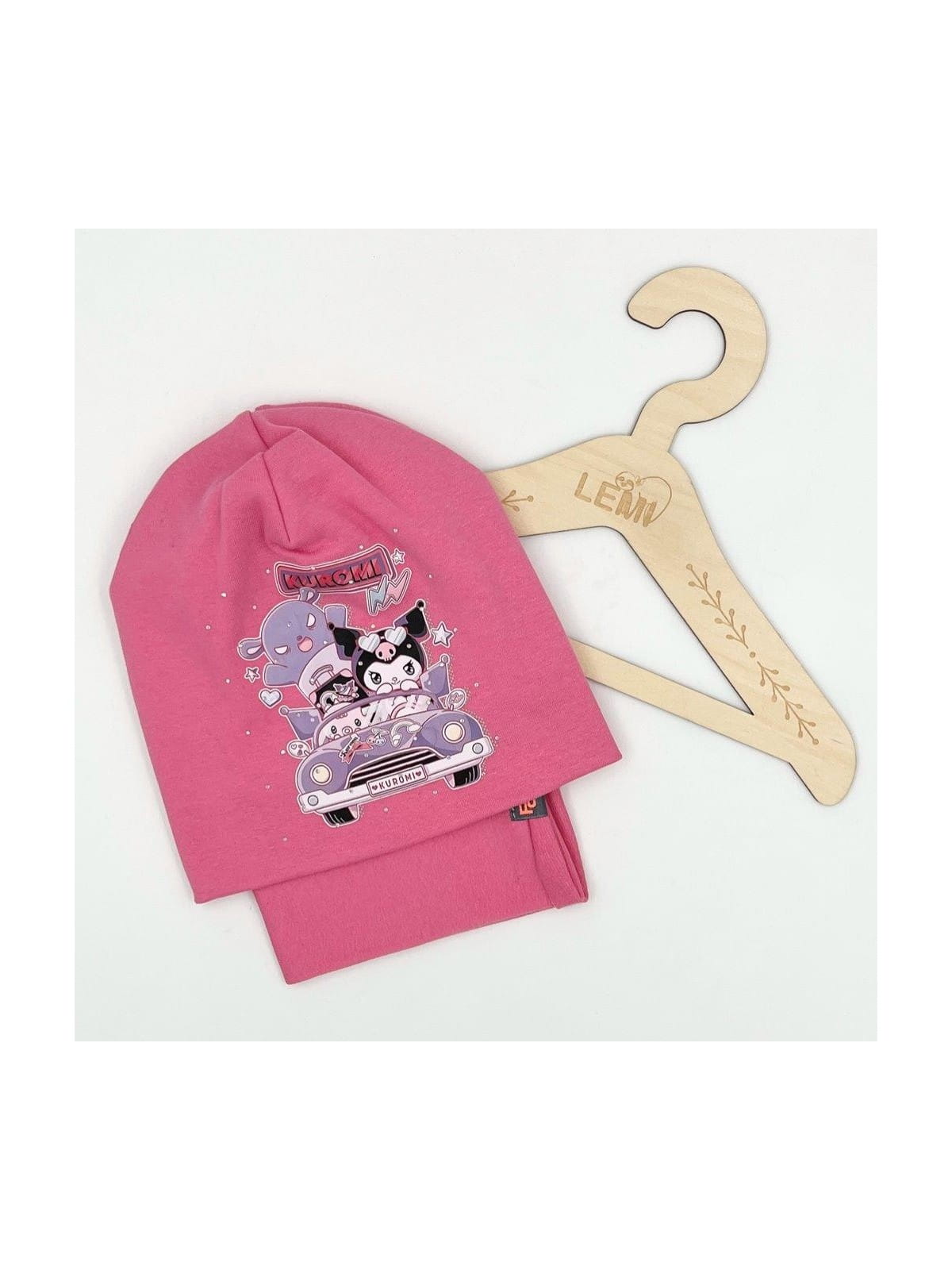 Bawełniany komplet dla dziewczynki – czapka + komin z motywem Kuromi, polska produkcja