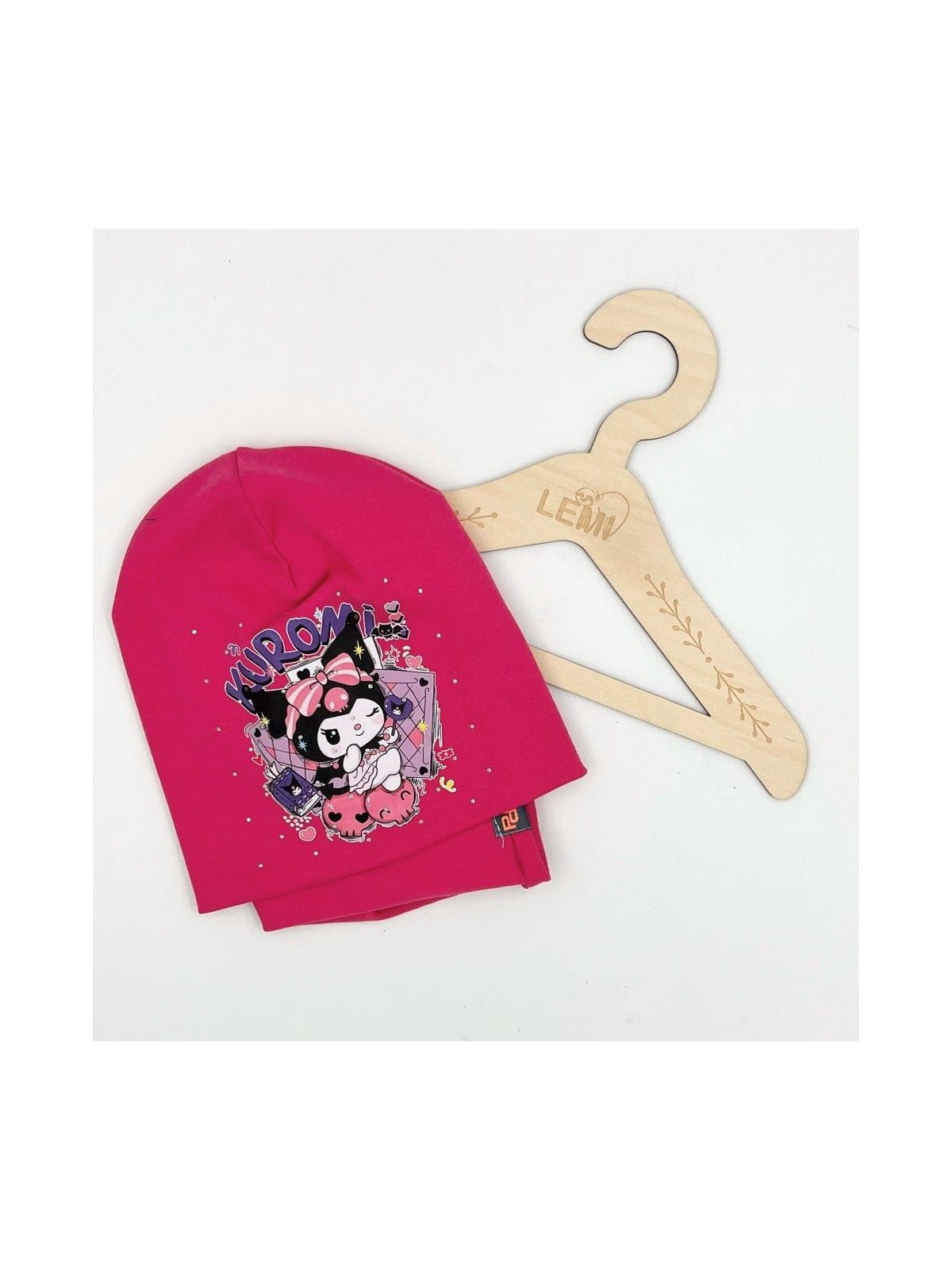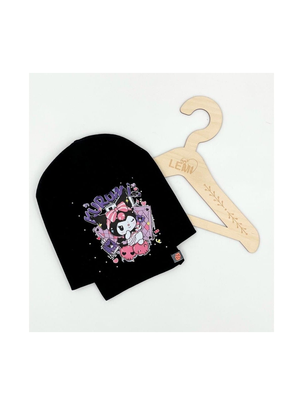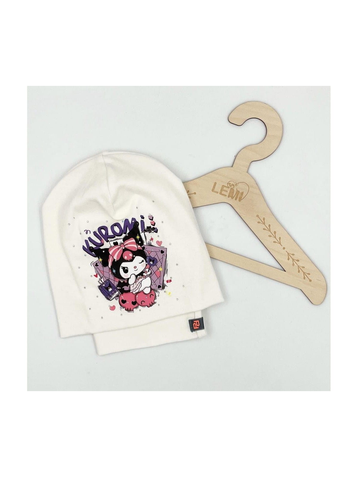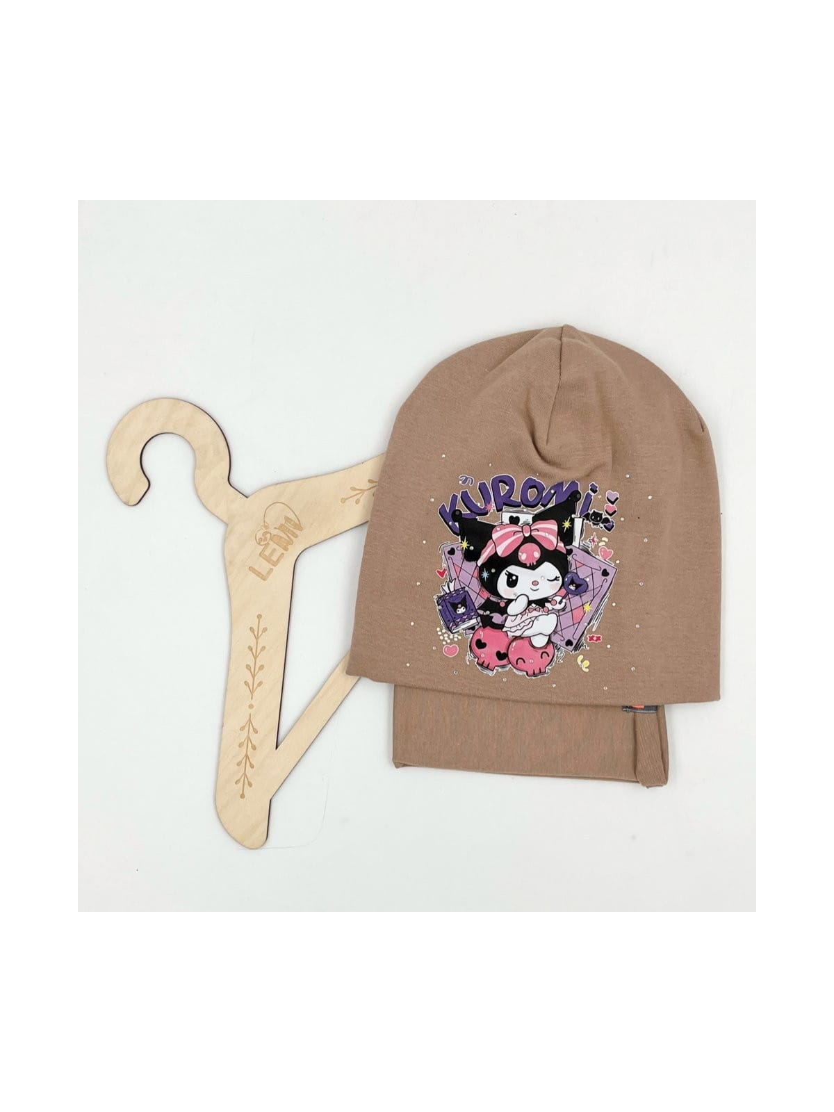 Bawełniany komplet dla dziewczynki – czapka + komin z motywem Kuromi, polska produkcja