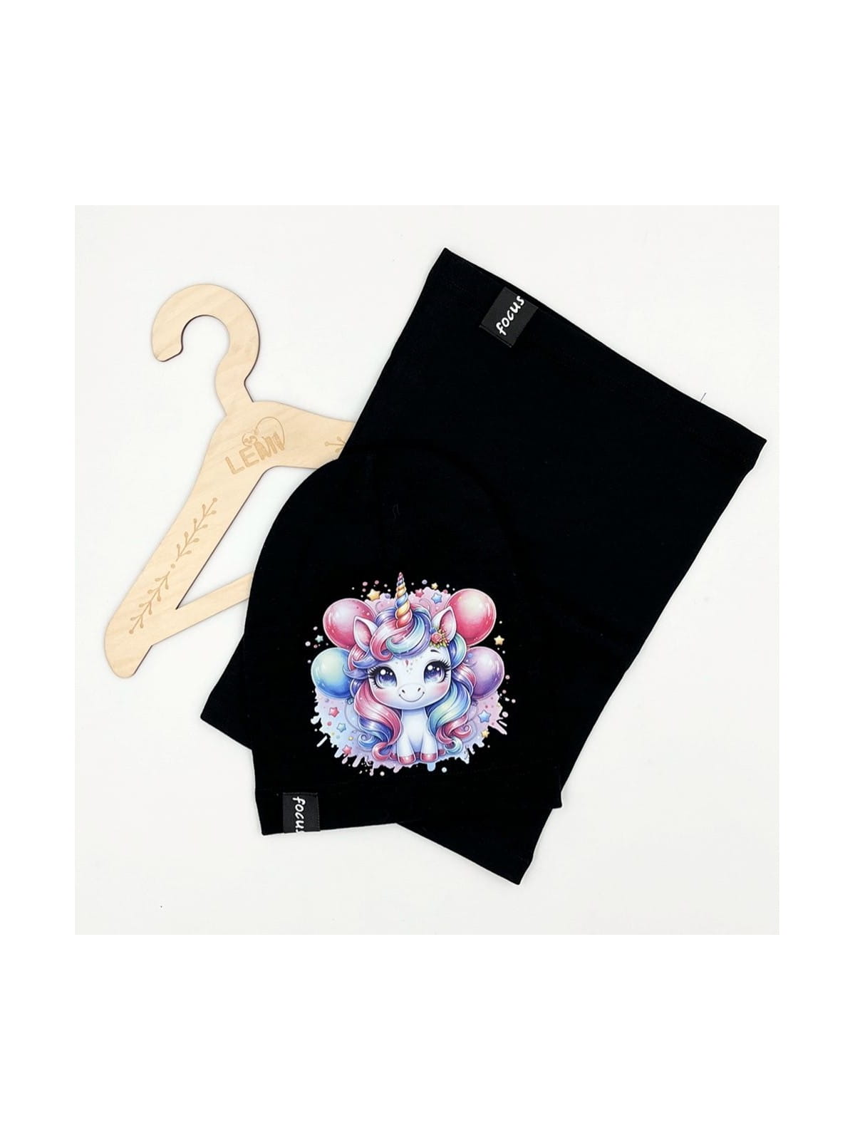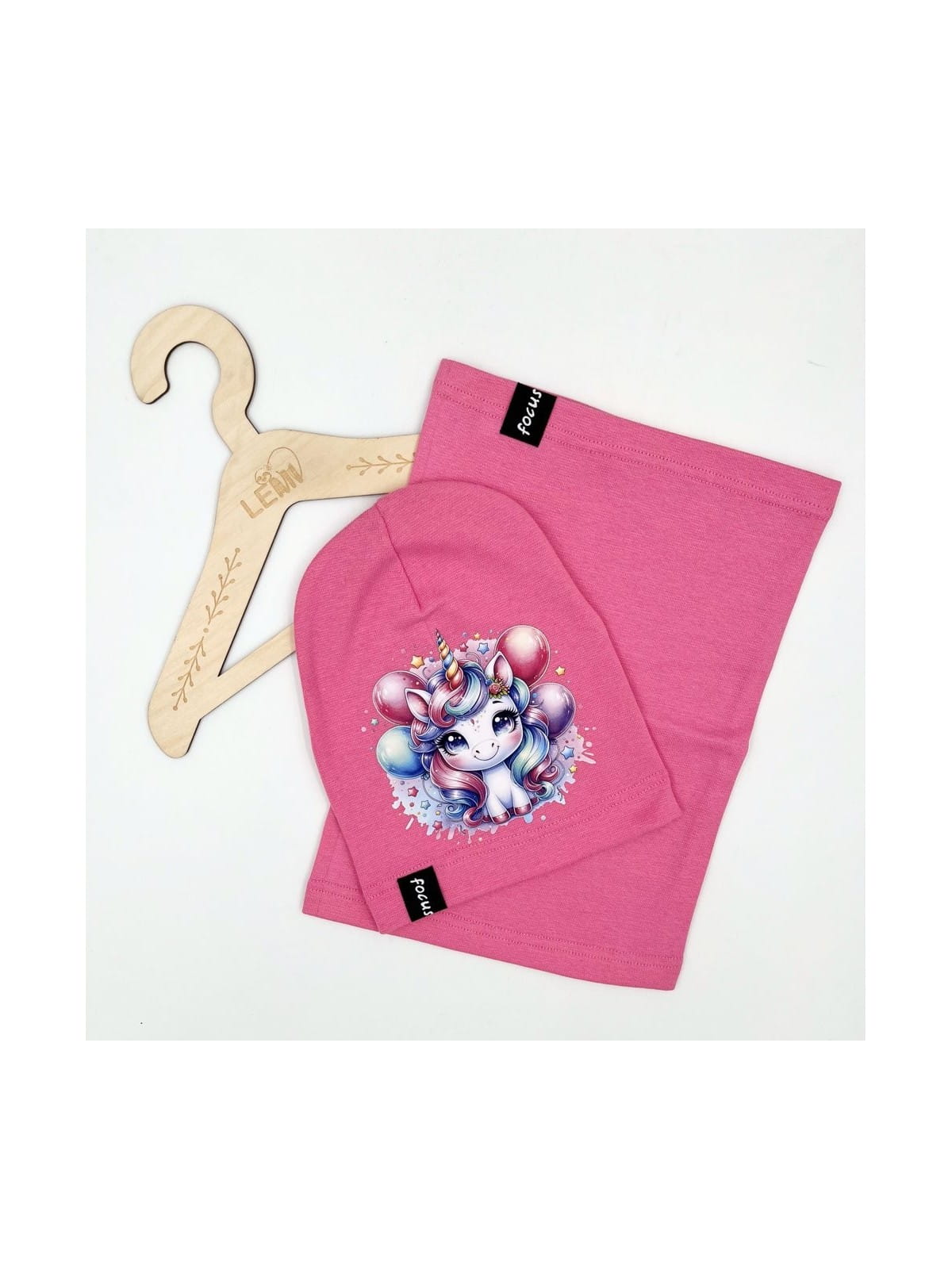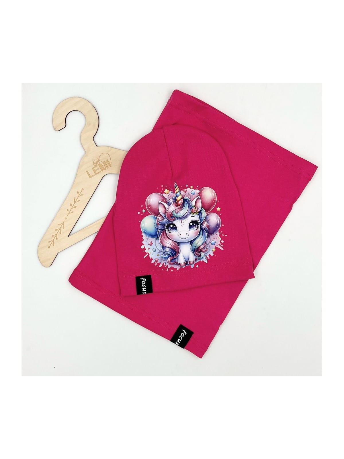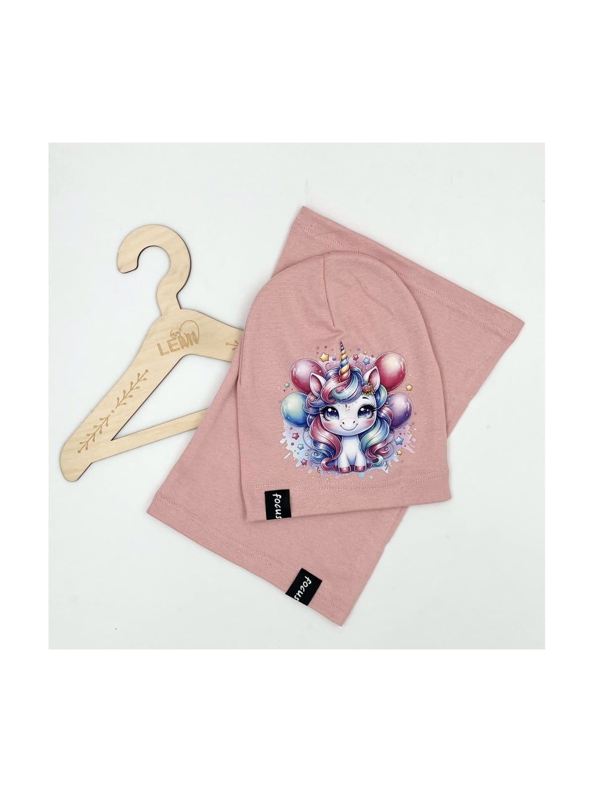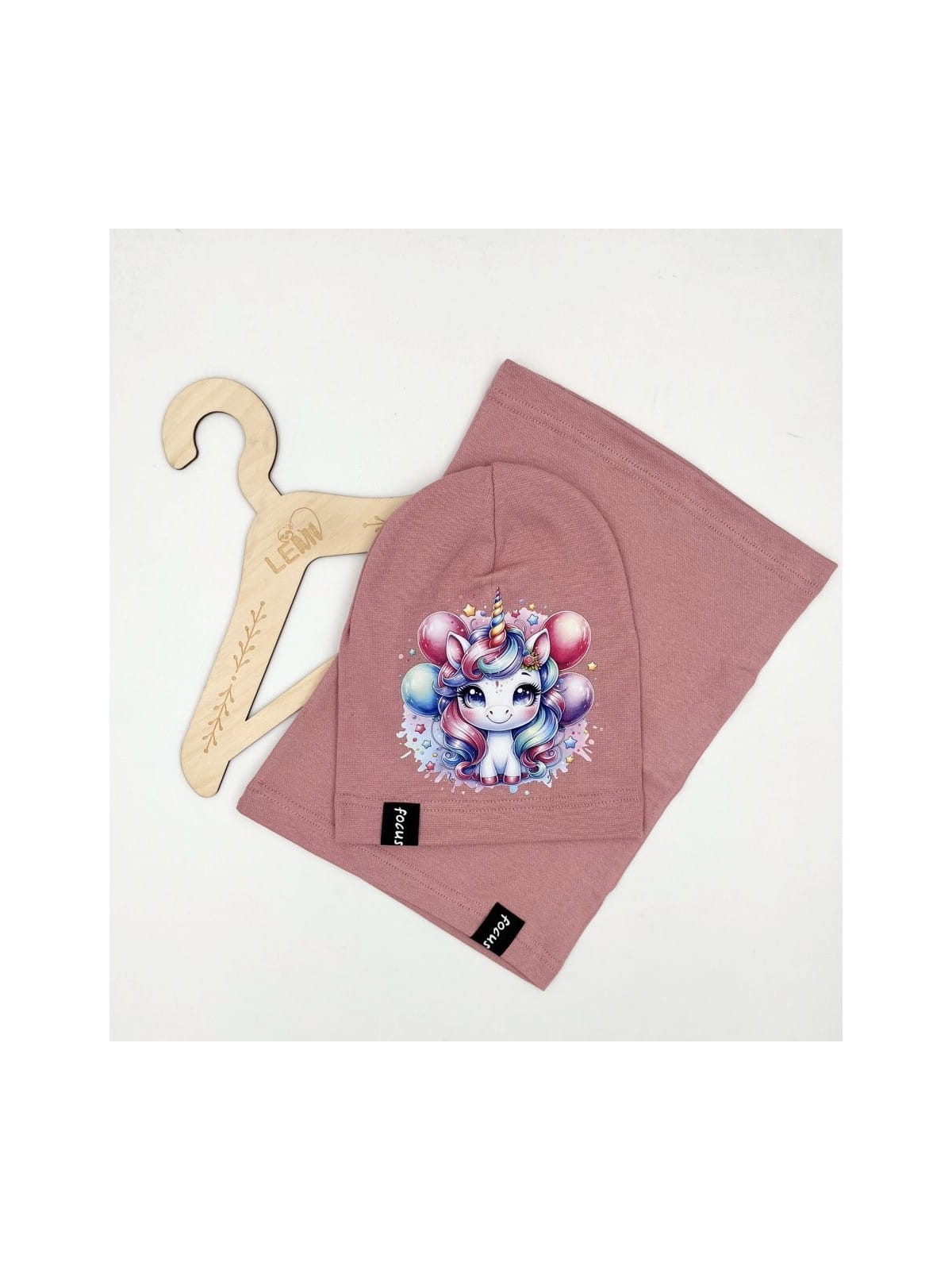 Bawełniany komplet dla dziewczynki – czapka + komin z jednorożcem