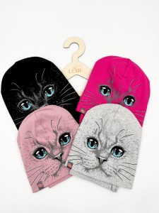 ✅ Wzór: czapka ozdobiona trwałym nadrukiem uroczego kota, który spodoba się każdej małej miłośniczce zwierząt.