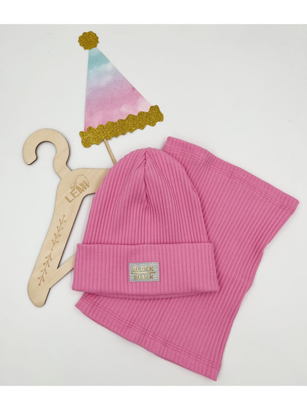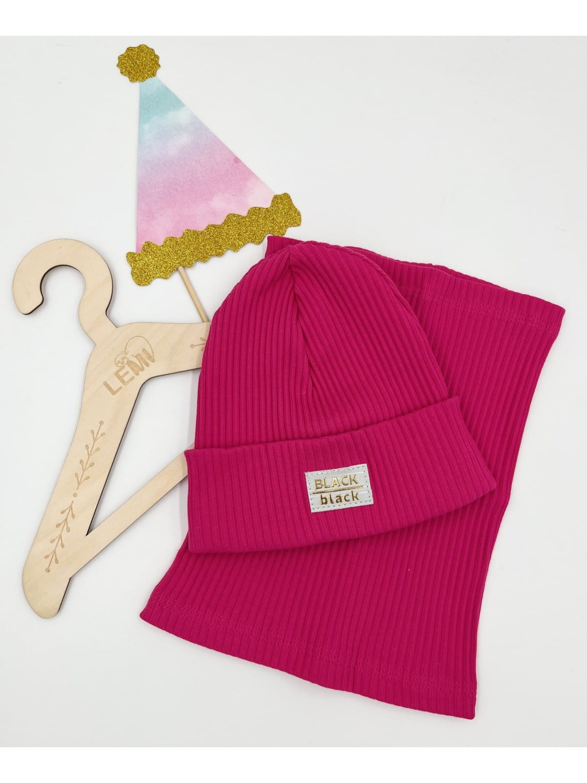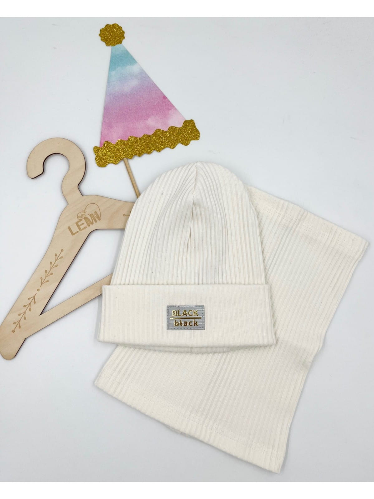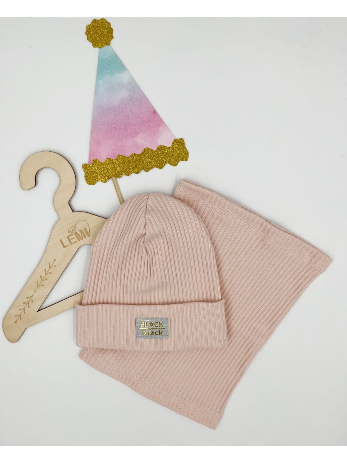 Bawełniany komplet dla dziewczynki – czapka + komin, prążek, polska produkcja
