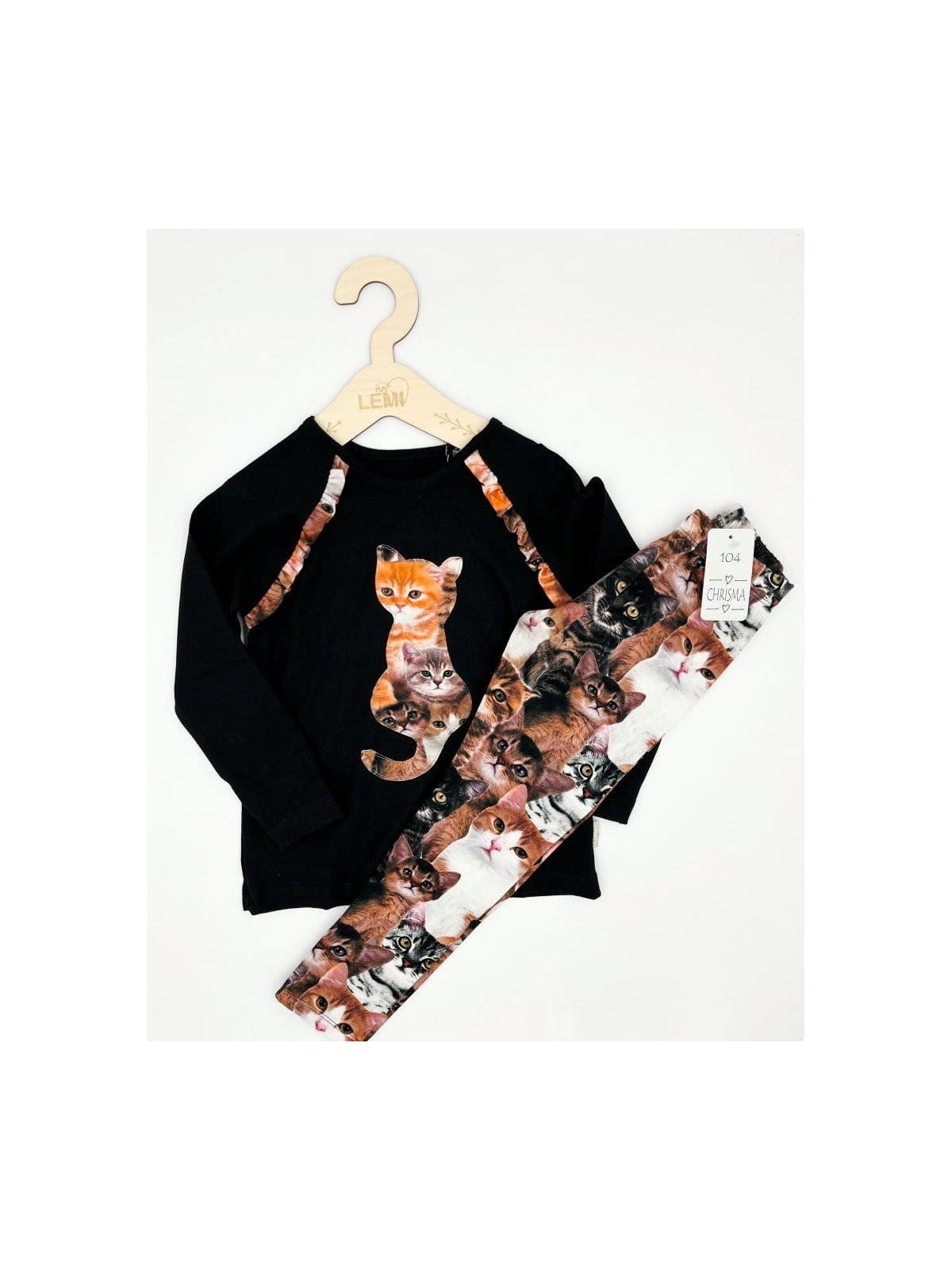Bawełniany komplet dla dziewczynki polskiej produkcji firmy Chrisma składa się z bluzki na długi rękaw oraz legginsów. Bluzka wykonana jest z miękkiej, wysokiej jakości bawełny, zapewniającej komfort noszenia. Posiada długie rękawy, które idealnie chronią przed chłodem w chłodniejsze dni. Na przodzie bluzki znajduje się piękny nadruk w formie kota, co sprawia, że wygląda ona niezwykle uroczo i dziewczęco.