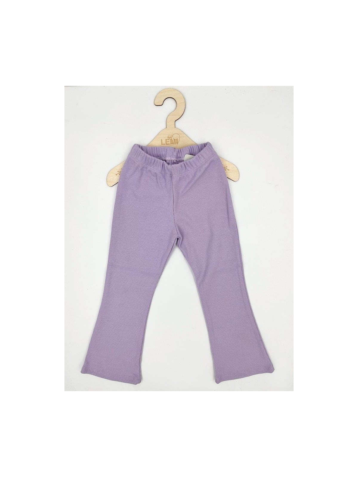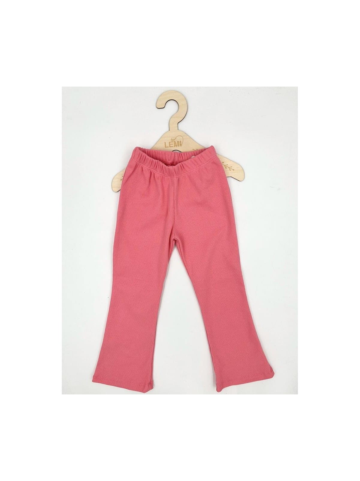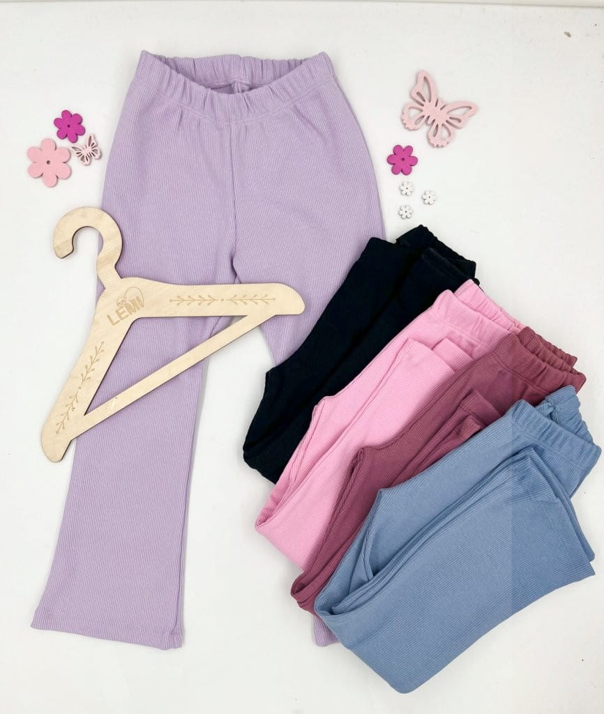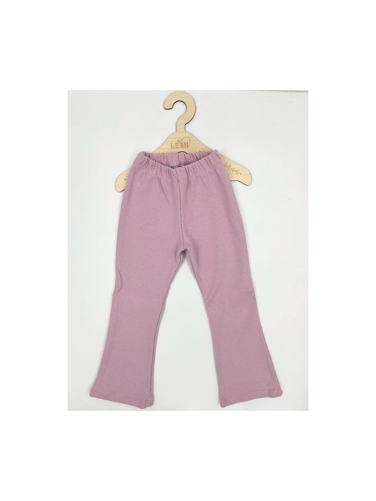 Materiał w prążek zapewnia elastyczność i dopasowanie, a rozszerzane nogawki w stylu dzwonów dodają charakteru i modnego wyglądu. Ubranie wykonane z dbałością o detale – z myślą o wygodzie dziecka i estetyce.