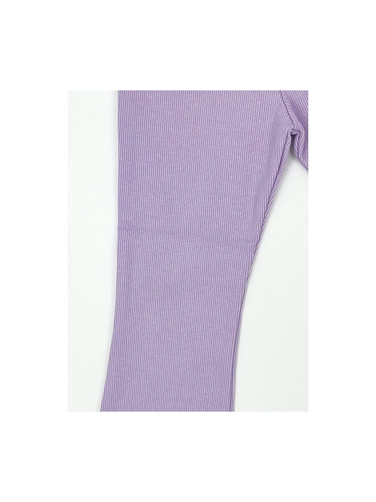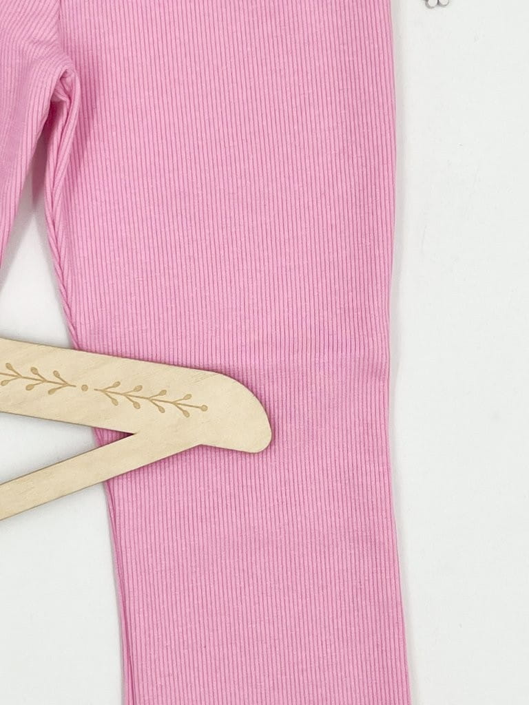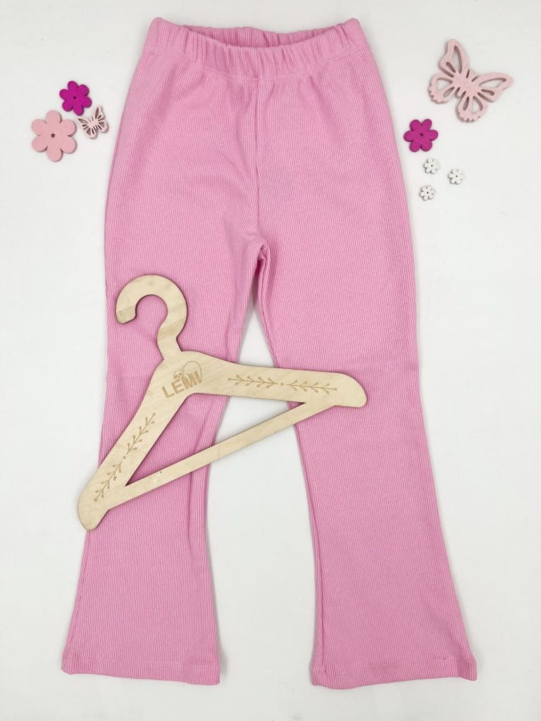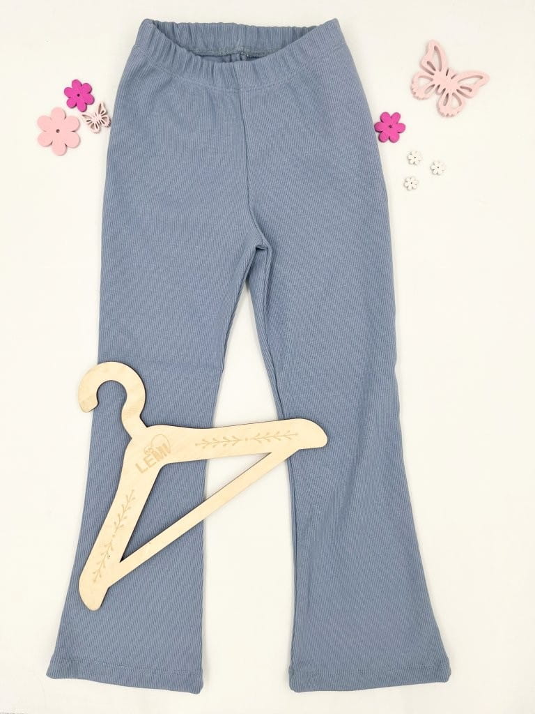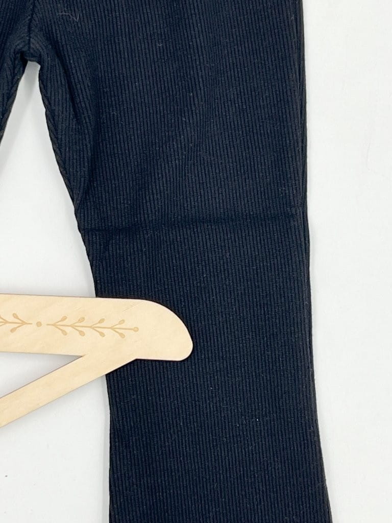 Materiał w prążek zapewnia elastyczność i dopasowanie, a rozszerzane nogawki w stylu dzwonów dodają charakteru i modnego wyglądu. Ubranie wykonane z dbałością o detale – z myślą o wygodzie dziecka i estetyce.