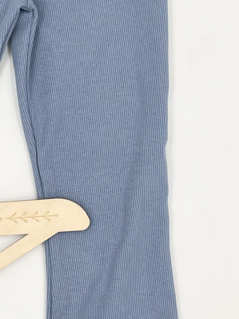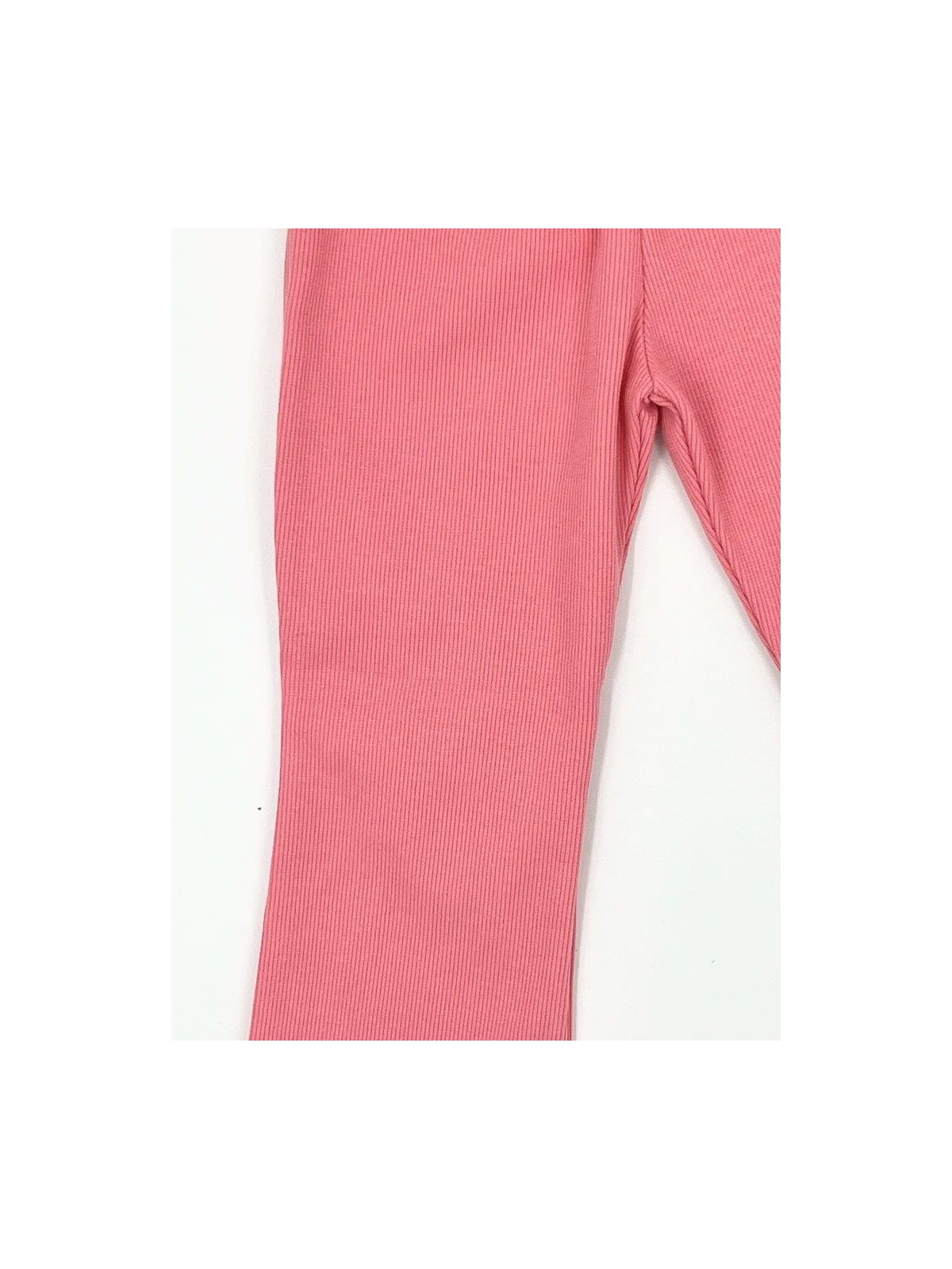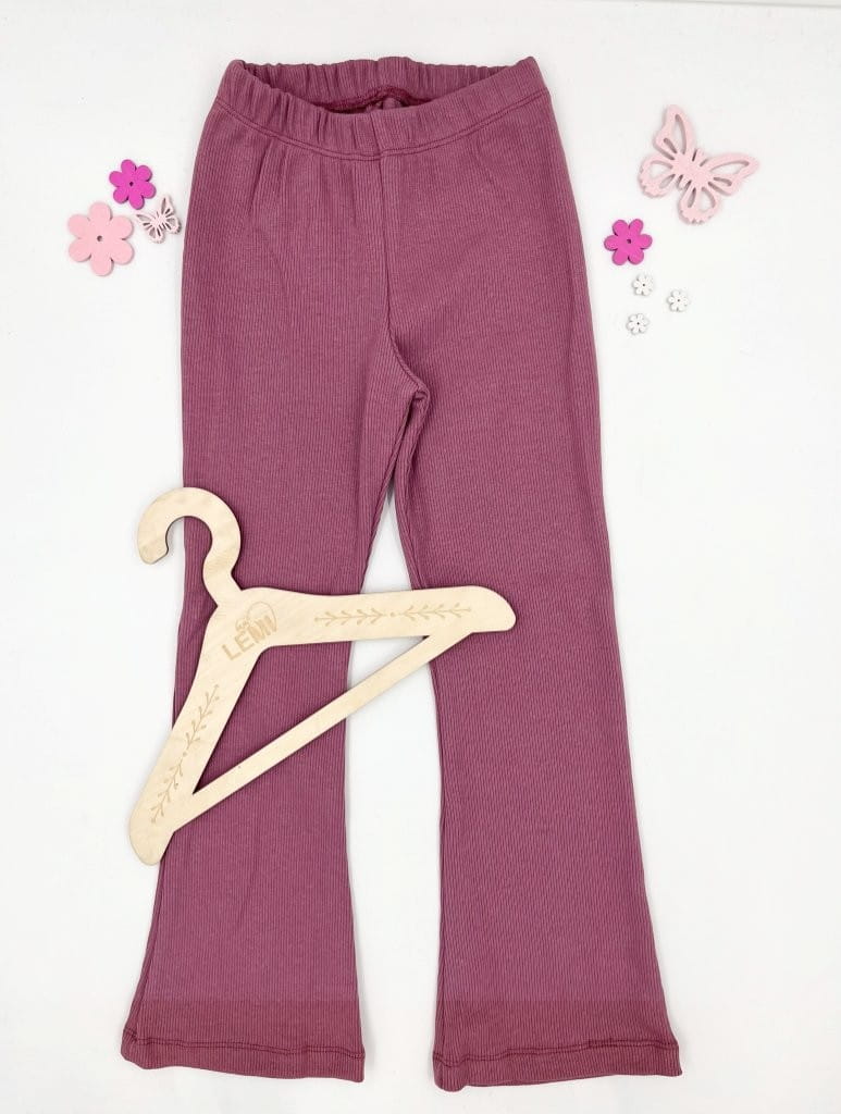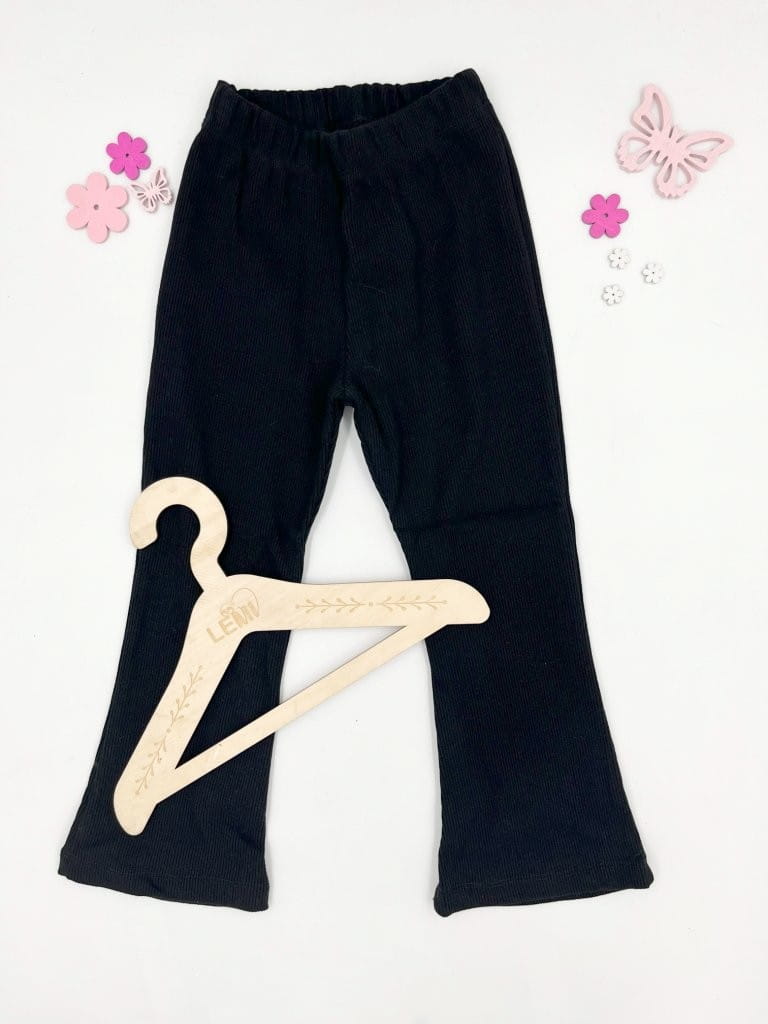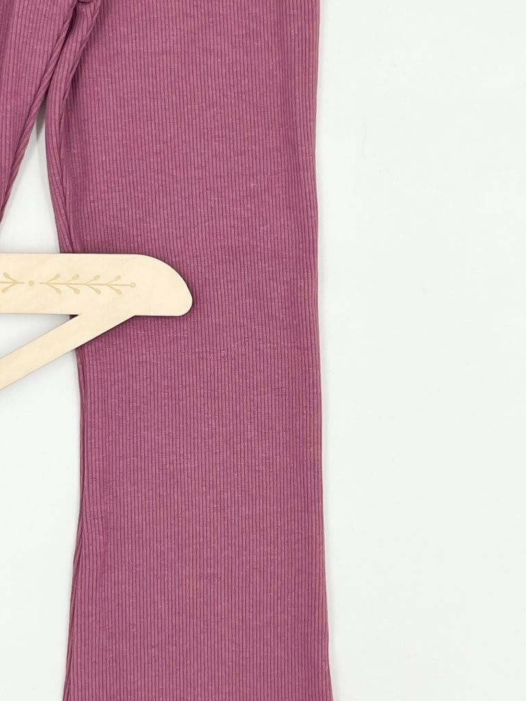 Materiał w prążek zapewnia elastyczność i dopasowanie, a rozszerzane nogawki w stylu dzwonów dodają charakteru i modnego wyglądu. Ubranie wykonane z dbałością o detale – z myślą o wygodzie dziecka i estetyce.