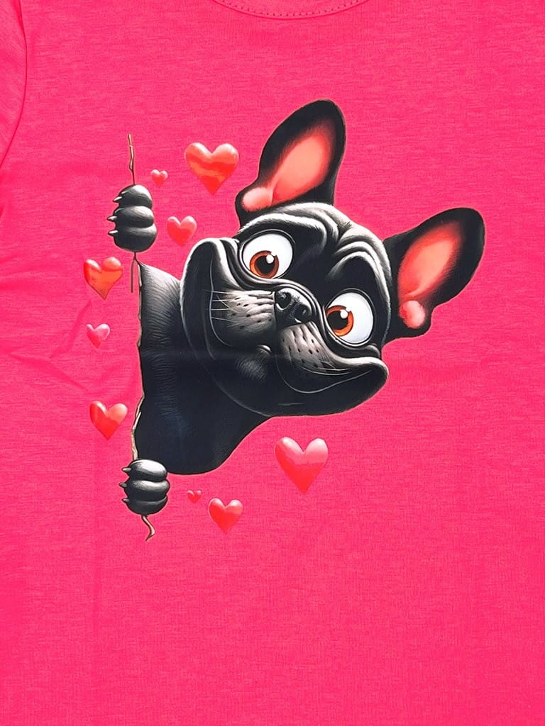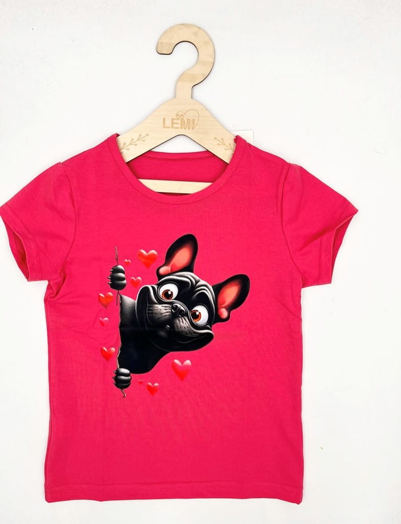 T-shirt dziewczęcy na lato z bawełny – polska produkcja, z nadrukiem psa buldoga