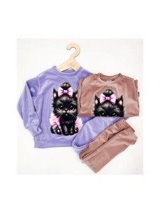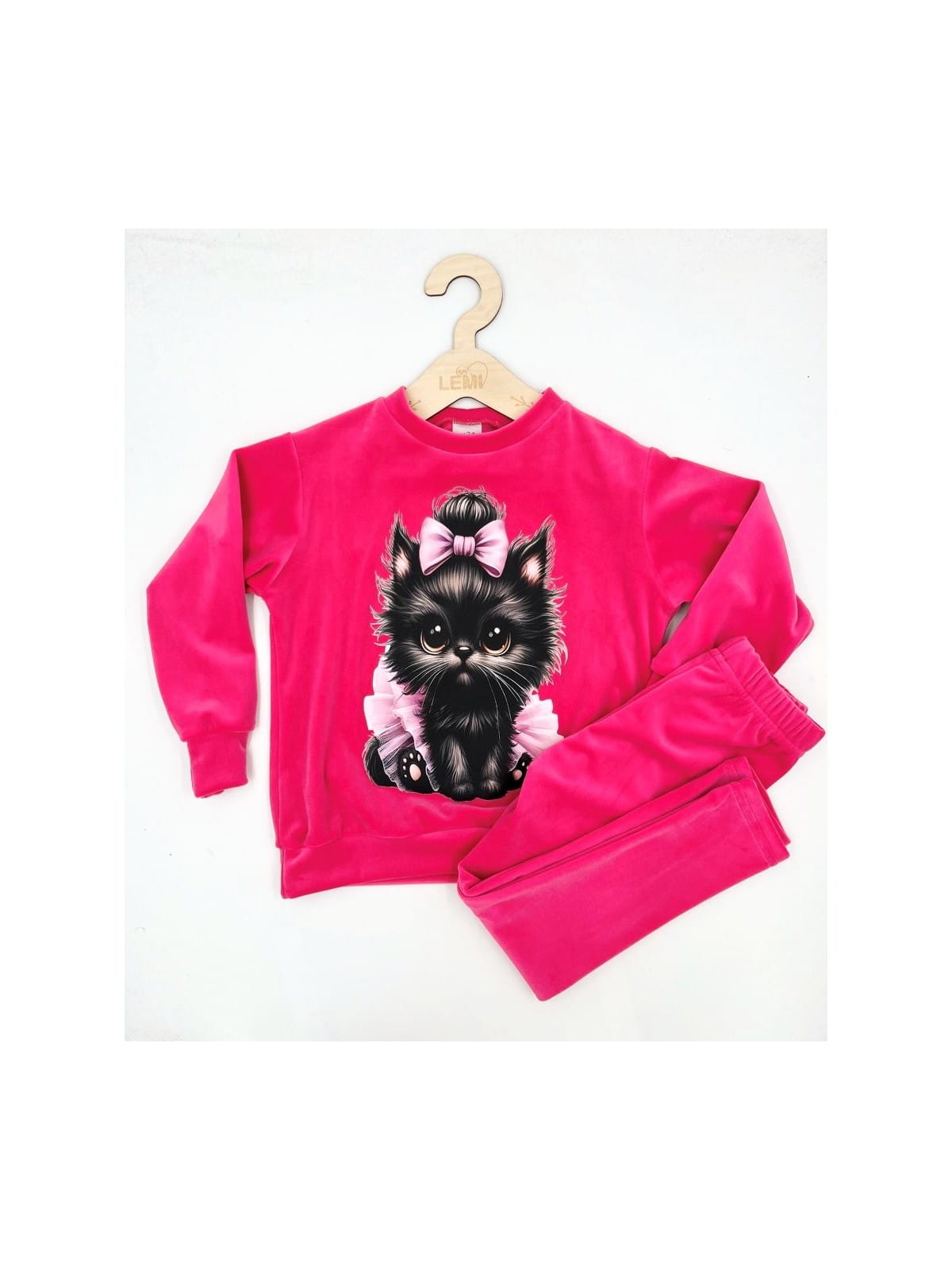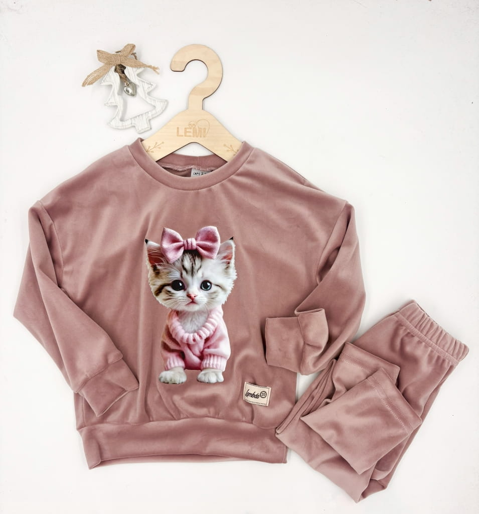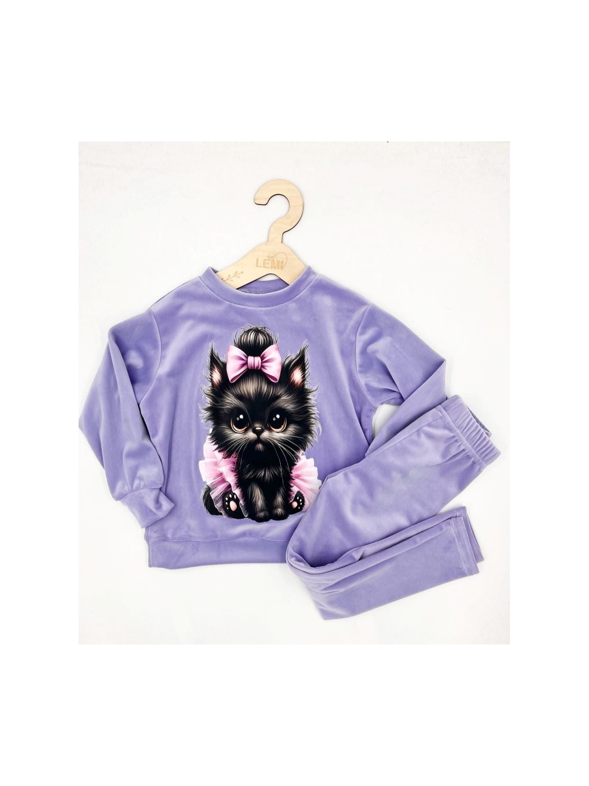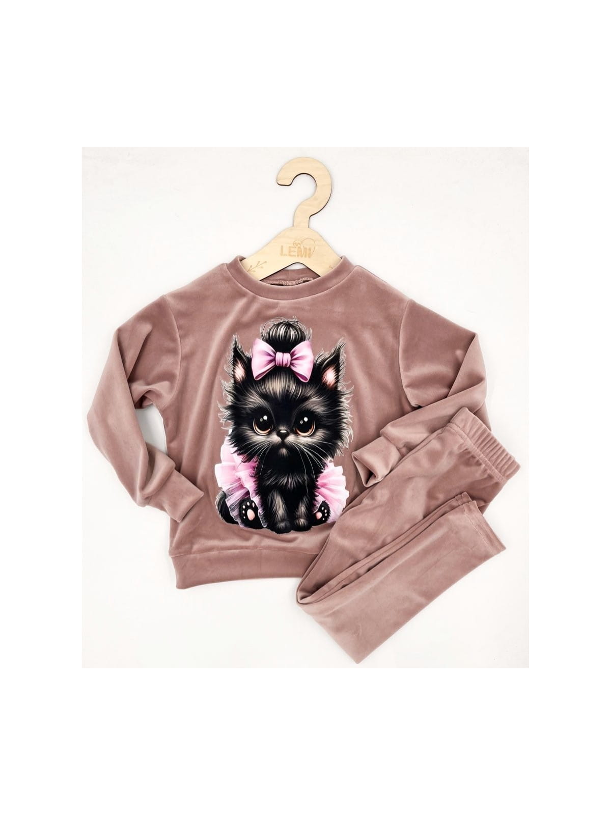 Dres dziewczęcy welurowy dwuczęściowy Lambda kot polski