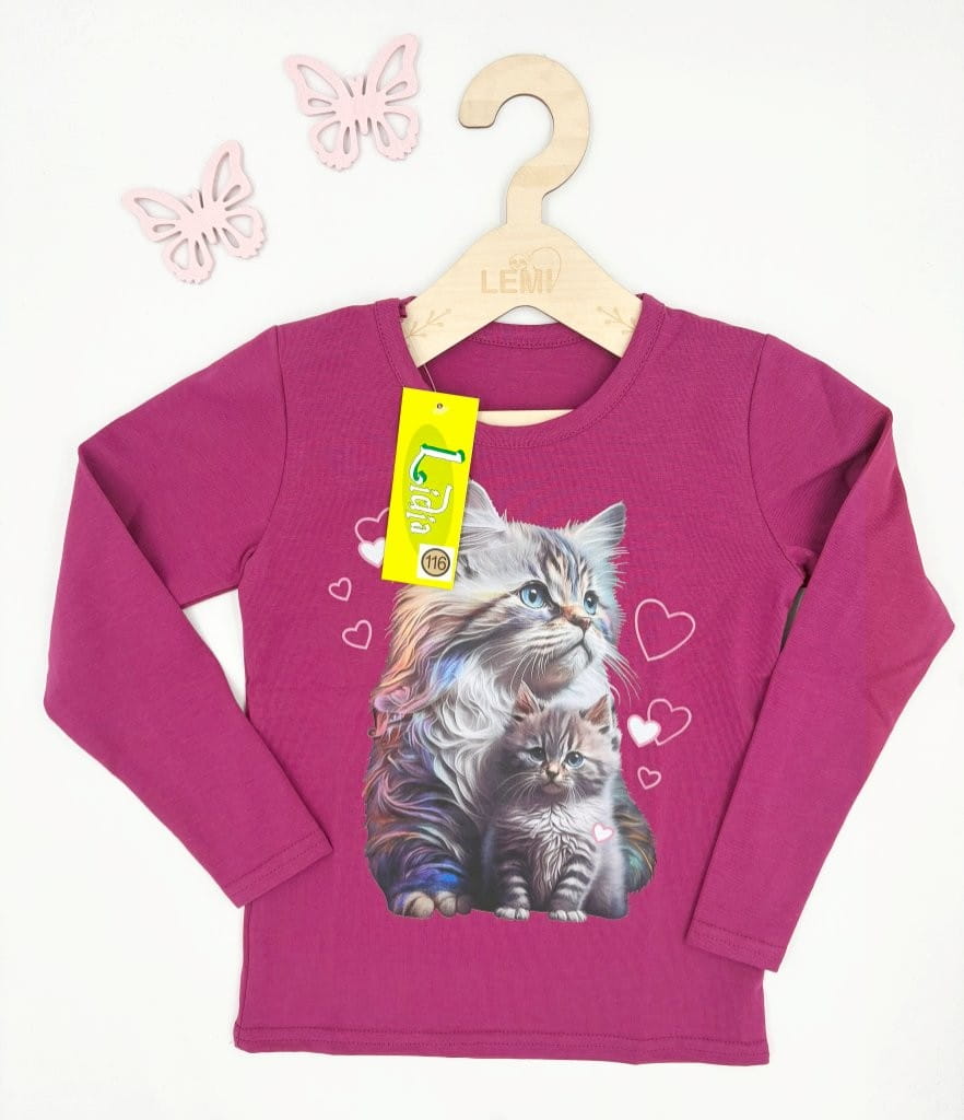 Bawełniana bluzka dziewczęca z kotkami – długa rękaw, polska produkcja Lidia
