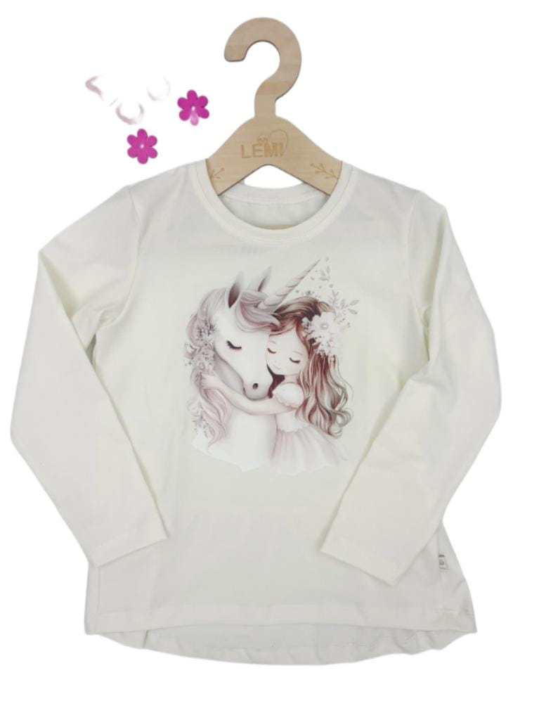 Bawełniana bluzka dziewczęca z długim rękawem – Aipi, nadruk dziewczynki z jednorożcem