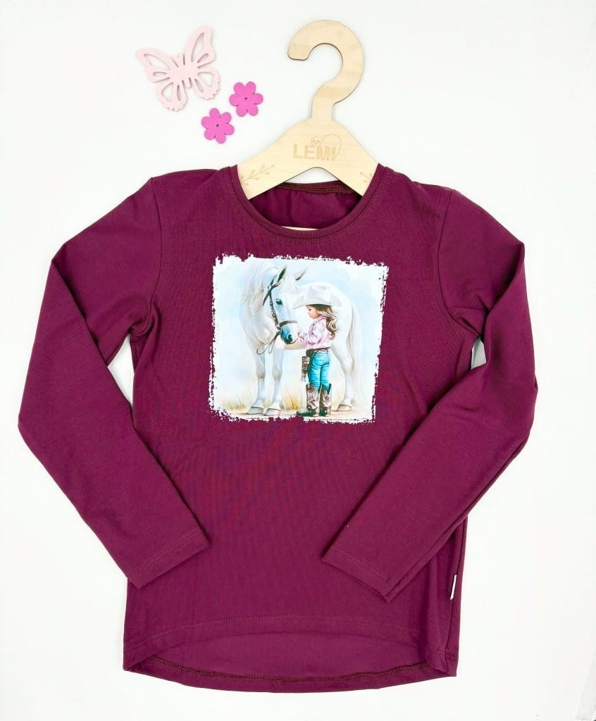 Bluzka dziewczęca polska bawełna długi rękaw koń 2 Aipi