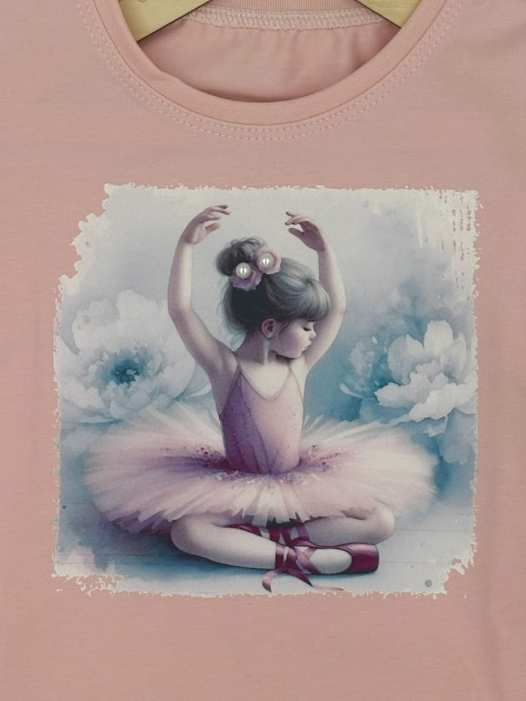 Nadruk baletnicy z dwiema naszytymi perełkami