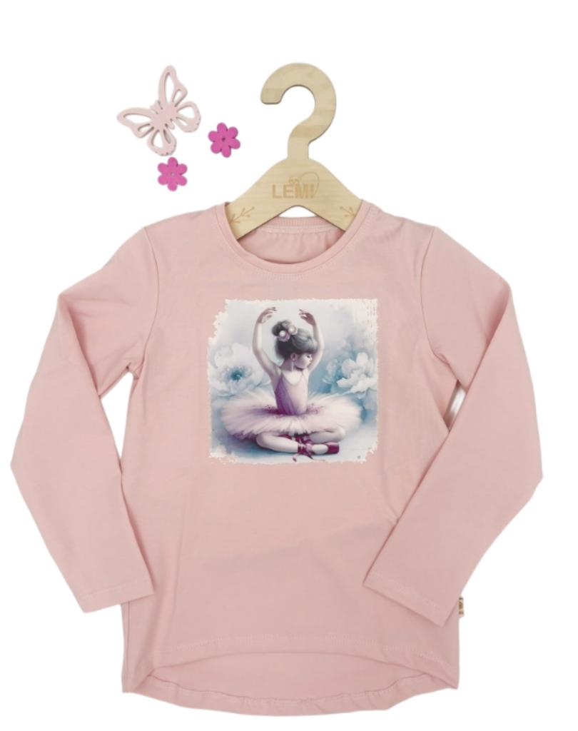 Bawełniana bluzka dziewczęca z długim rękawem – Aipi, nadruk baletnicy