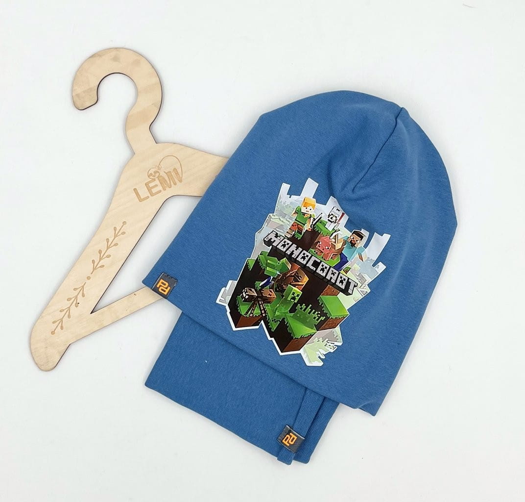 Komplet chłopięcy czapka plus komin bawełna PL wiosna Minecraft 3-8 lat