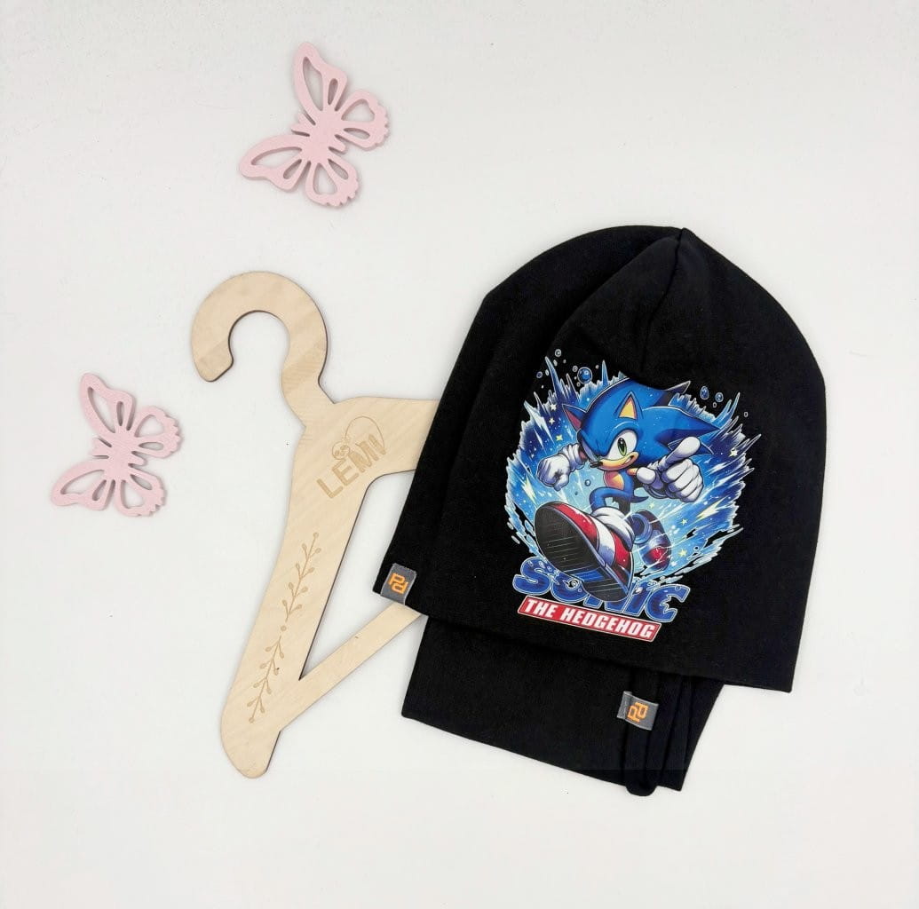 Bawełniany komplet czapka + komin dla chłopca – polska produkcja, nadruk Sonic