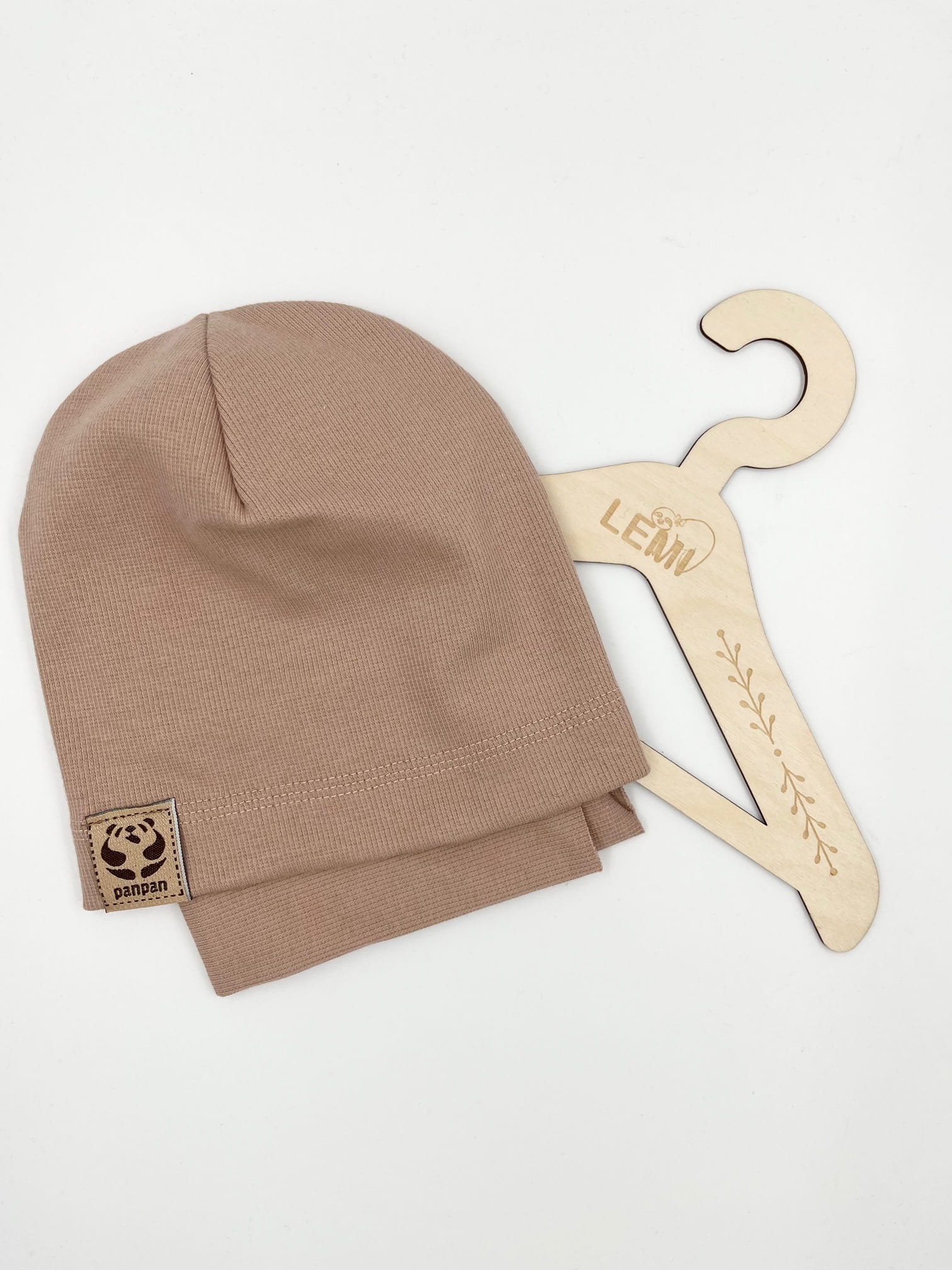 Bawełniany komplet chłopięcy z prążka – czapka + komin na polarze
