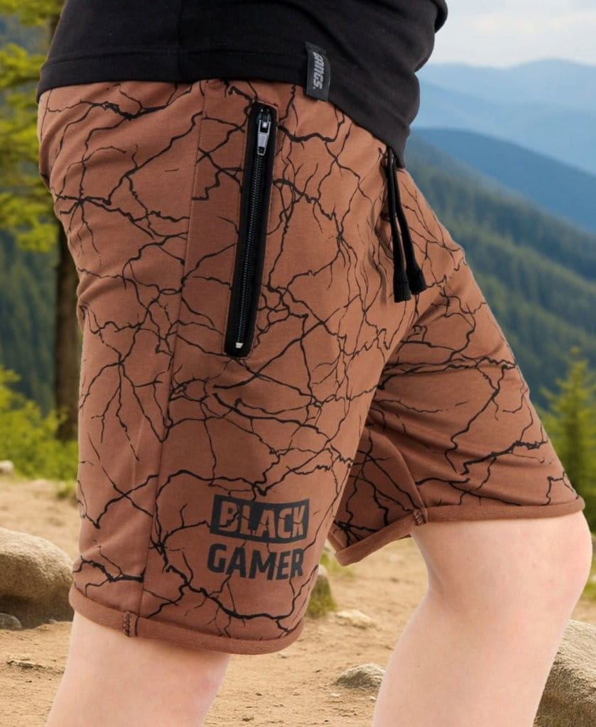 Krótkie Spodenki 1/2 DRUK – BLACK GAMER | Bawełna z Elaną, Kieszenie na Zamek, Polska Produkcja