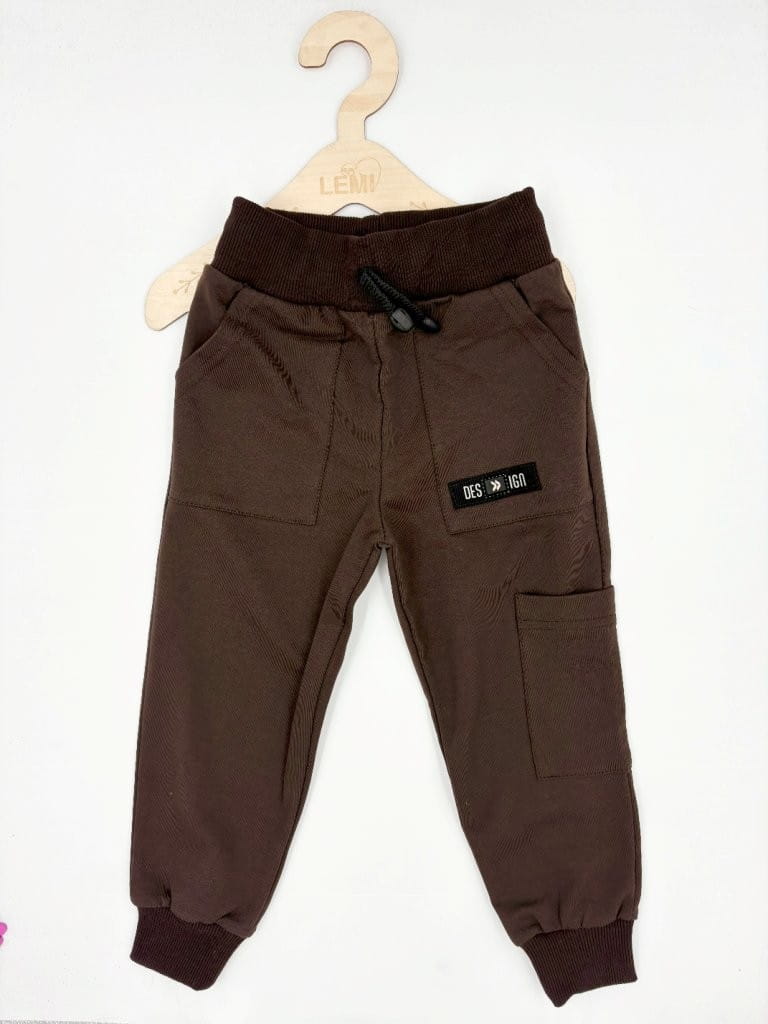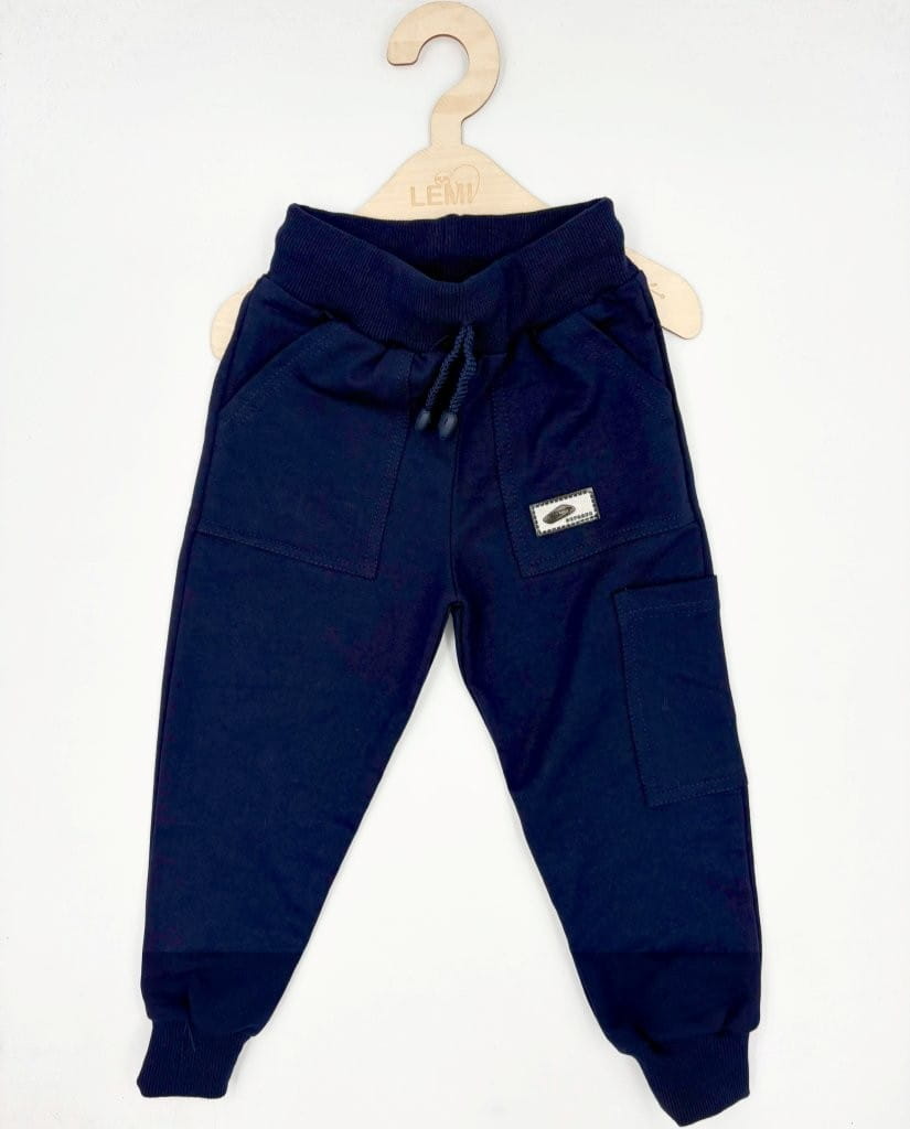 Bawełniane spodnie dresowe dla chłopca 95% bawełna, 5% elastan, na gumce ze sznurkiem, z kieszeniami po bokach i na nogawce, nogawki ze ściągaczami, wygodne i trwałe.
