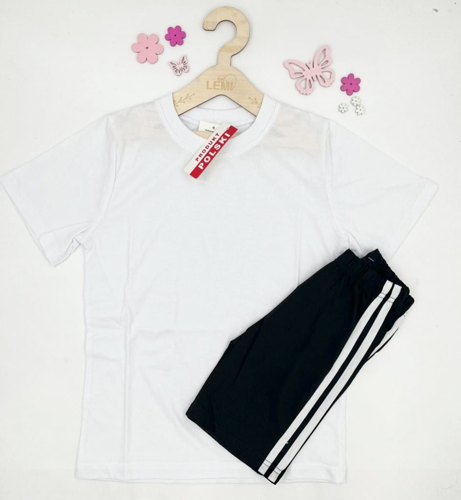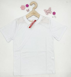 Biały t-shirt dziecięcy uniseks z 100% bawełny, polskiej marki Dresmoda. Przewiewny, wygodny, nie kurczy się w praniu – idealny na W-F i do codziennego noszenia.