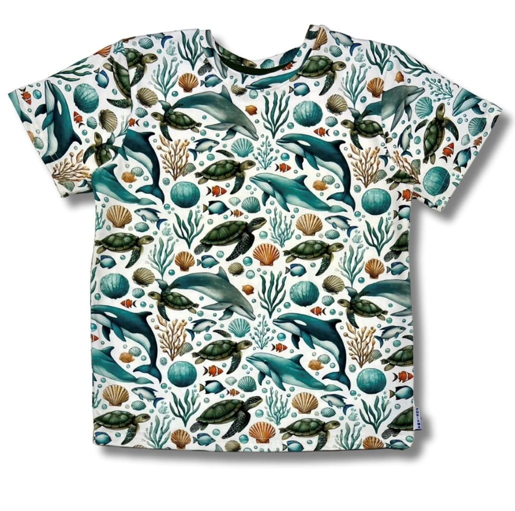 Chłopięcy T-shirt bawełniany 3D – morskie wzory (delfiny, żółwie) | Chrisma