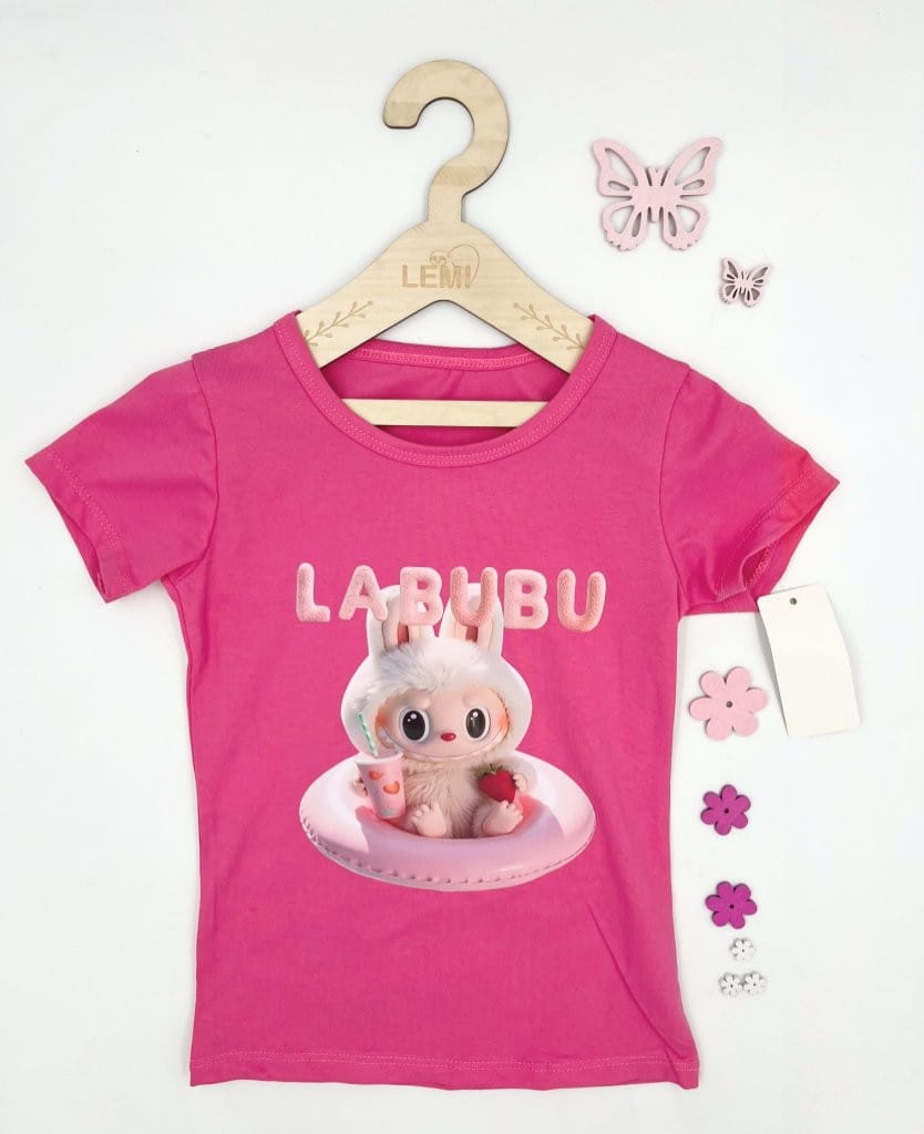 Koszulka dziewczęca La Bubu – włoski T-shirt bawełniany z nadrukiem. Wykonana z miękkiej dzianiny (95% bawełna, 5% elastan), zapewnia wygodę i swobodę ruchów. Idealna koszulka dla dziewczynki na co dzień i specjalne okazje.